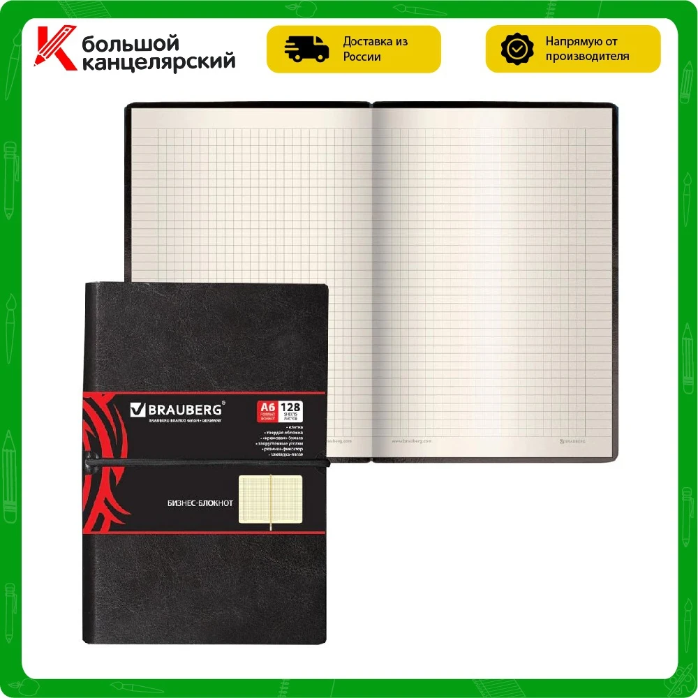 Формат блокнота А6 (100х150 мм) позволит владельцу поместить его в кейс или сумку габаритов.Бизнес-блокнот BRAUBERG "Black Jack" - стильное решение среди записных аксессуаров. Приобрести можно в нашем интернет-магазине.• Тип товара: бизнес-блокнот.• Серия: Black Jack.• Формат: А6.• Количество листов: 128.• Обложка: интегральная.• Текстура обложки: "гладкая кожа".• Обложка подходит для тиснения: горячего.• Застежка: резинка.• Внутренний блок: офсет.• Плотность внутреннего блока: 70 г/м2.• Цвет внутреннего блока: кремовый.• Линовка блока: клетка.• Закладка-ляссе: да.• Цвет обложки: черный.• Количество цветов в упаковке: 1.• Артикул производителя: 125243.