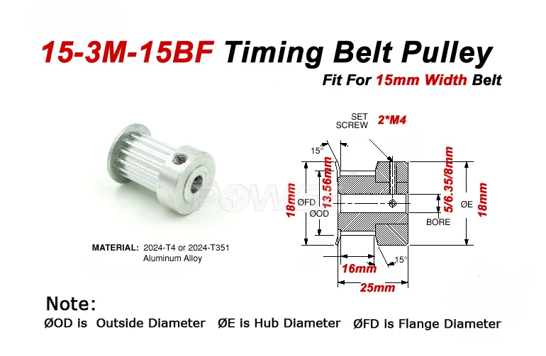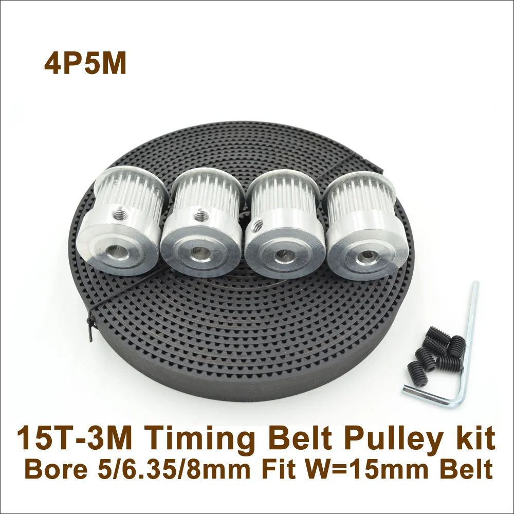Зубчатый шкив 3 м POWGE, 4 шт., зубчатый шкив диаметром 56,358 мм + 5 метров W = 15 мм 3 м, резиновый синхронный открытый ремень 15 T, 15-зубчатый шкив HTD3M