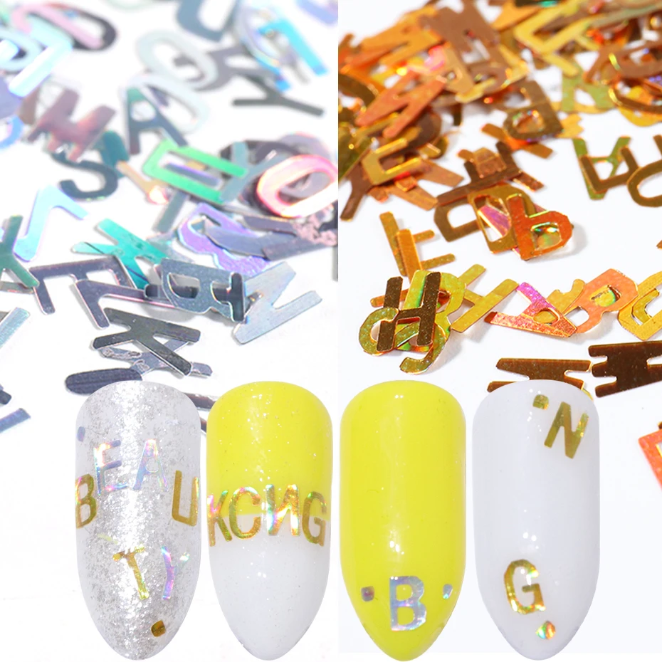 1 пакет зеркальные блестящие буквы для ногтей Блестки цвета ногтей ...