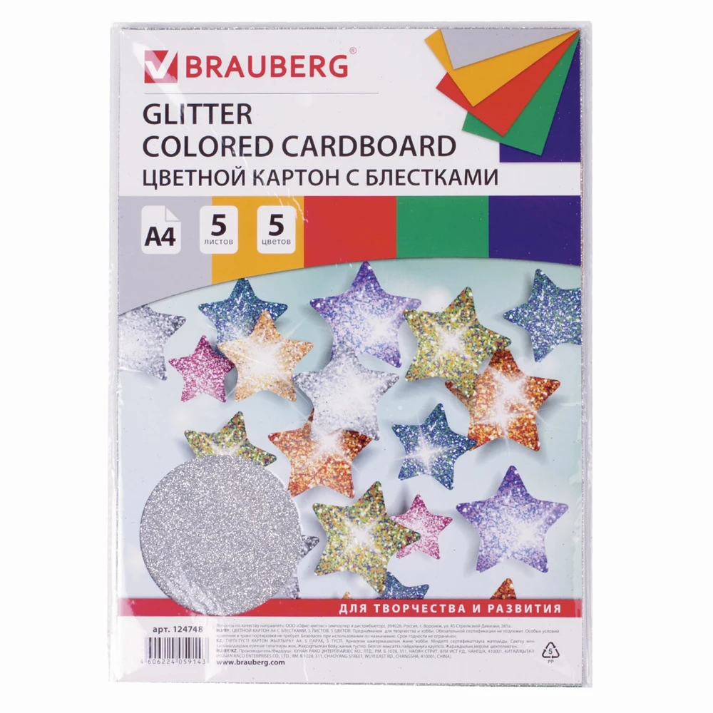 Набор цветного картона BRAUBERG предназначен для творчества, хобби, моделирования, оформления презентаций как любителями, так и профессионально занимающимися людьми.Цветной картон со сплошными блестками обладает плотностью 280 г/м2. Может использоваться, начиная с трехлетнего возраста. Картон легко режется ножницами, сгибается и клеится. Внутренний блок состоит из 5 листов формата А4 (210х290 мм) и 5 цветов.Набор цветного картона BRAUBERG рекомендован для уроков труда и технологии. Спешите купить все необходимое для детского творчества в нашем интернет-магазине!• Формат: А4.• Количество листов: 5.• Количество цветов: 5.• Тип картона: с блестками.• Плотность картона: 280 г/м2.• Длина: 210 мм.• Ширина: 297 мм.• Упаковка: пакет.• Артикул производителя: 124748.