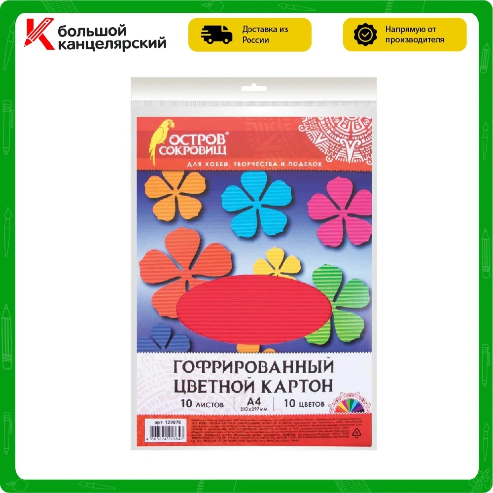 Гофрированный цветной картон А4 Остров Сокровищ, 10 цветов