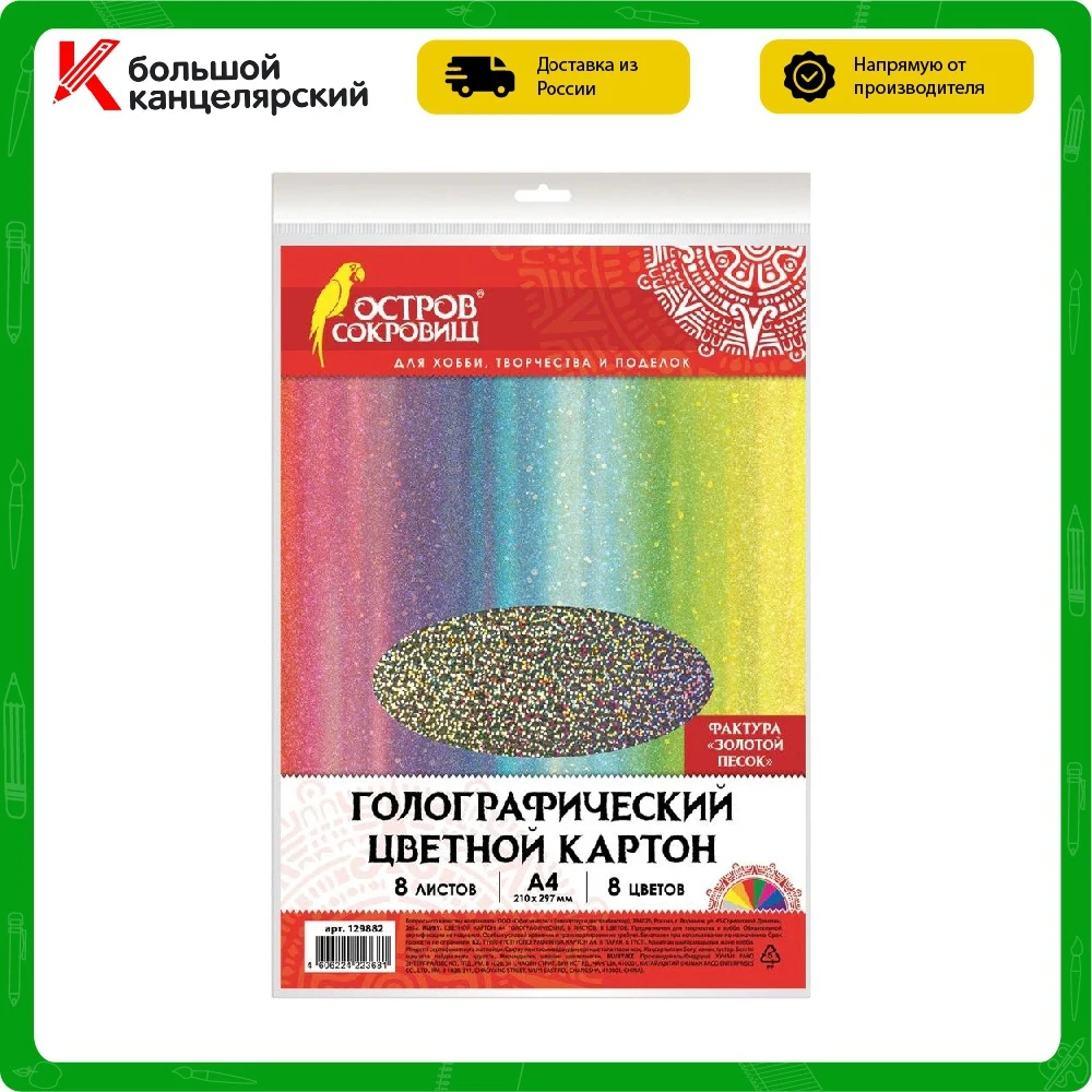 Голографический цветной картон А4 Остров Сокровищ, золотой песок, 8 цветов