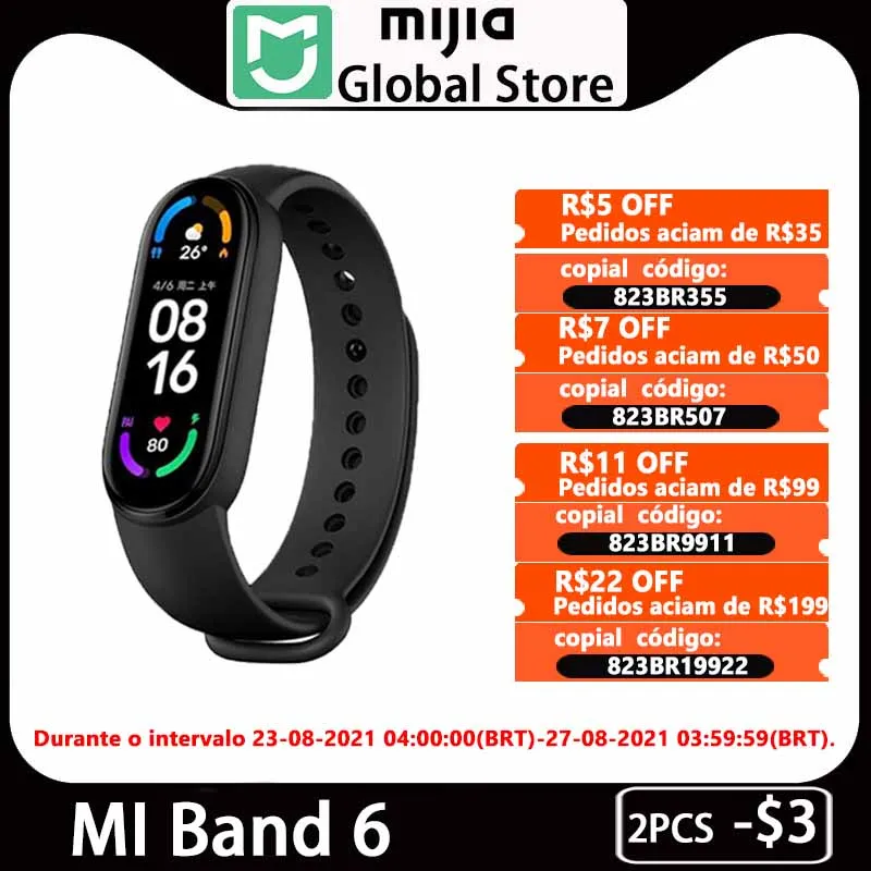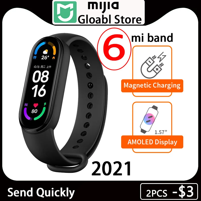 Смарт-браслет Xiaomi Mi Band 6, фитнес трекер с AMOLED экраном 5 цветов, водонепроницаемый, с поддержкой Bluetooth