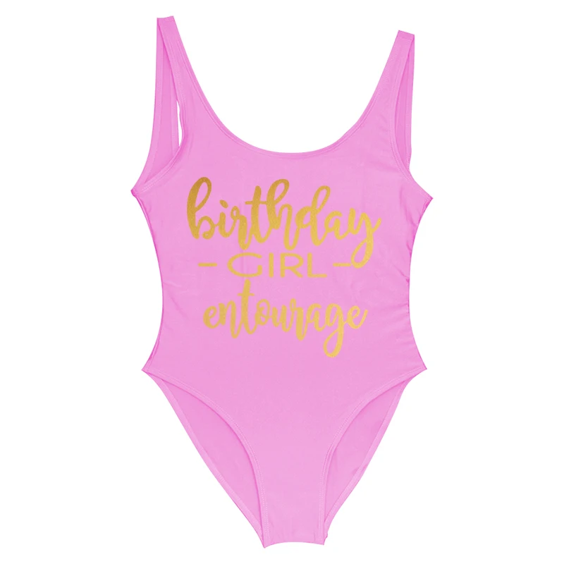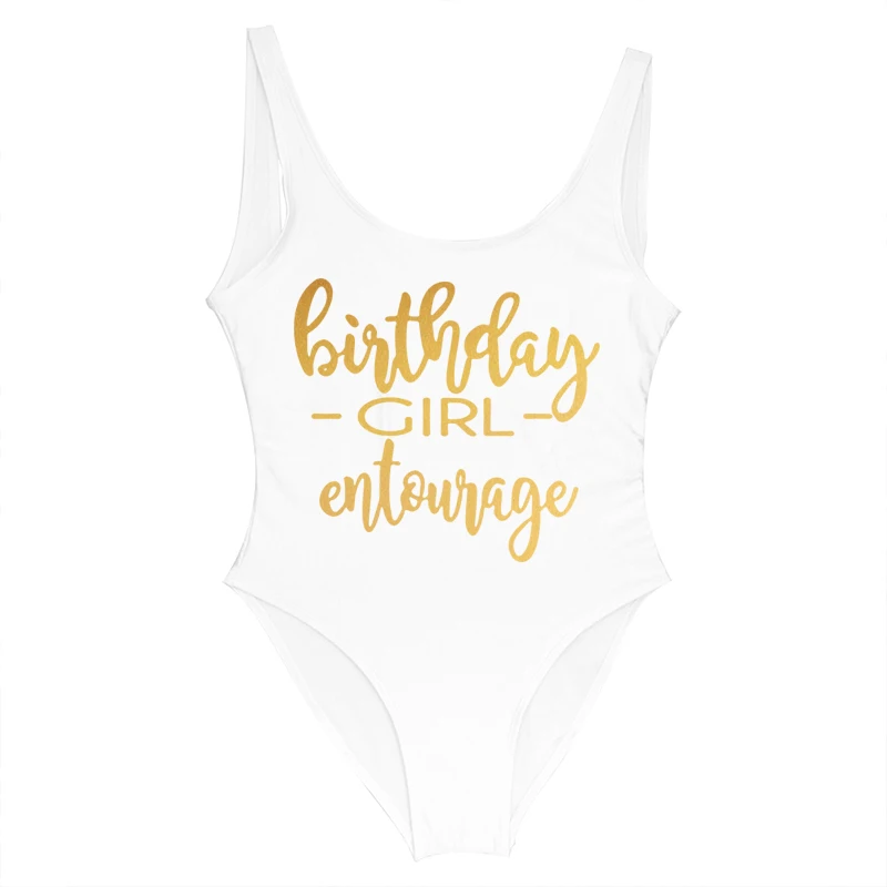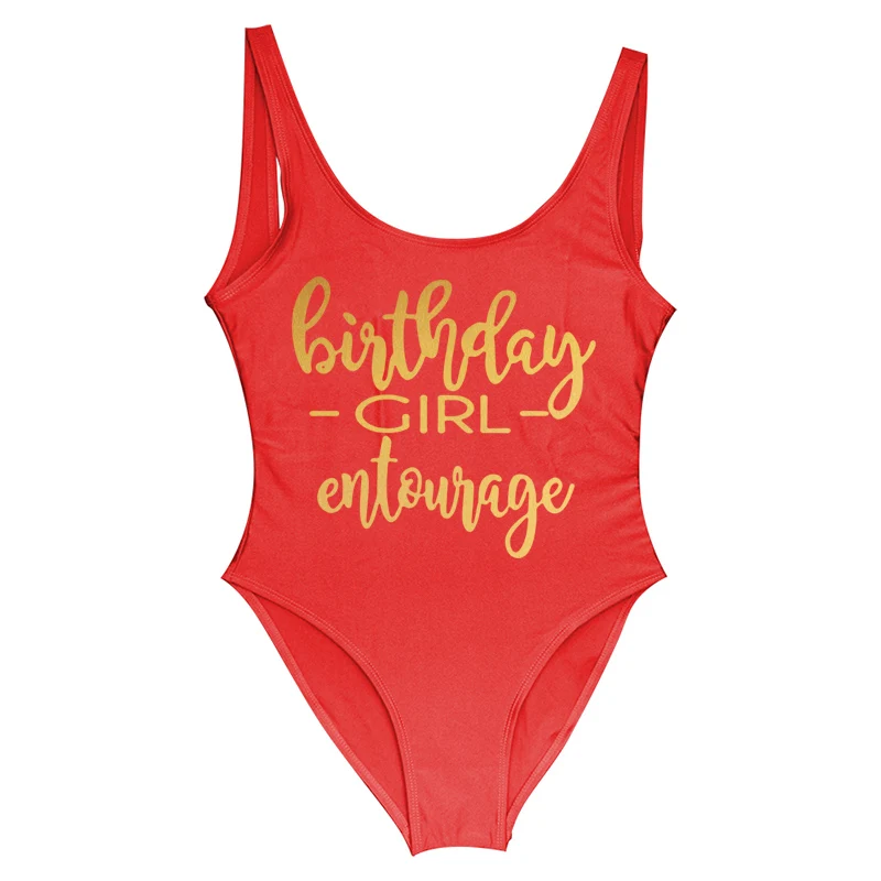 Для девочек на день рождения, Плавание костюмы женские пикантные туфли с золотыми буквами Плавание одежда Плавание костюм цельнокроеный бикини с надписью вечерние пляжная одежда женский пляжный костюм
