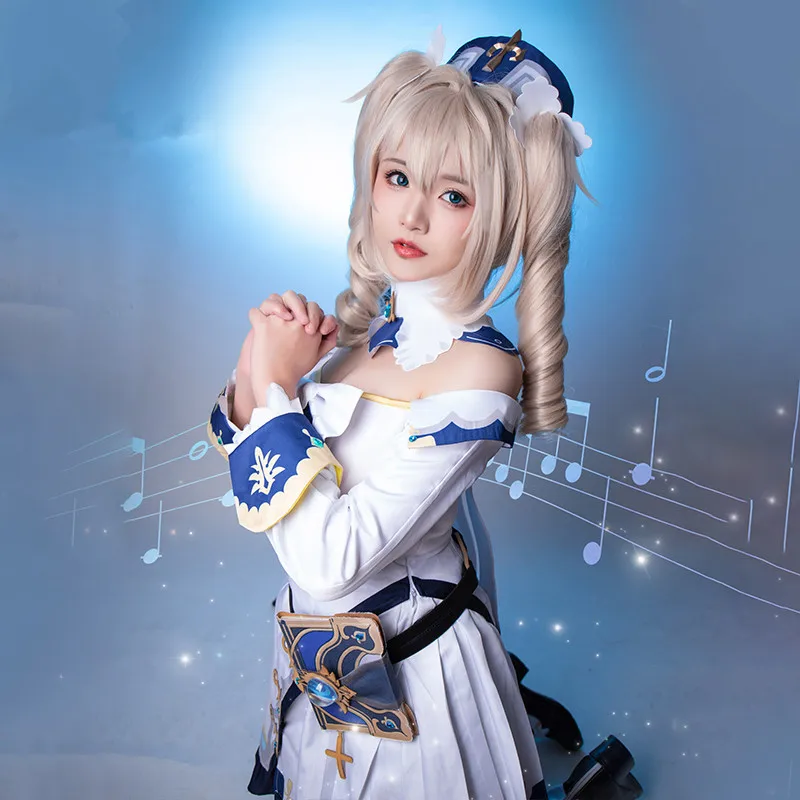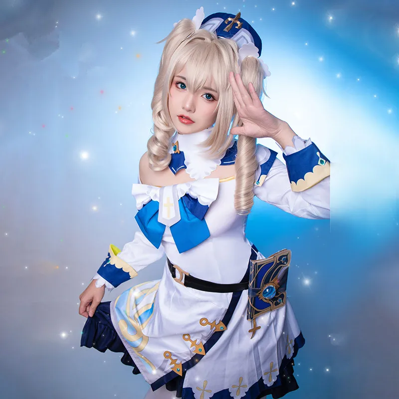 Женский костюм для косплея Genshin Impact Barbara, костюм с париком, Униформа, рубашка и штаны на Хэллоуин, плащ, полный комплект