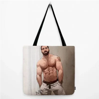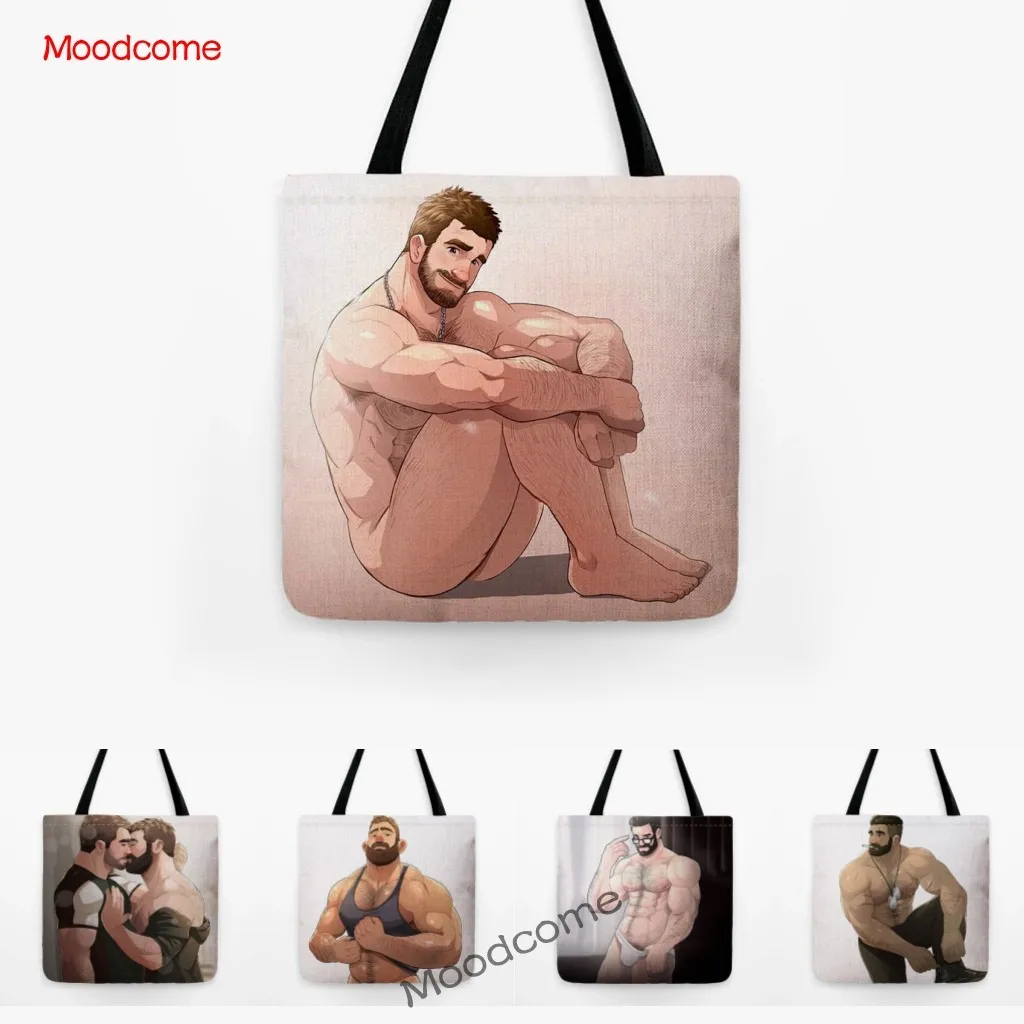 ЛГБТ парад искусство плечо тоут сумка сексуальный горячий мускул мужской тренажерный зал искусство водостойкий хлопок лен гомосексуар Шоппинг Холст Сумка
