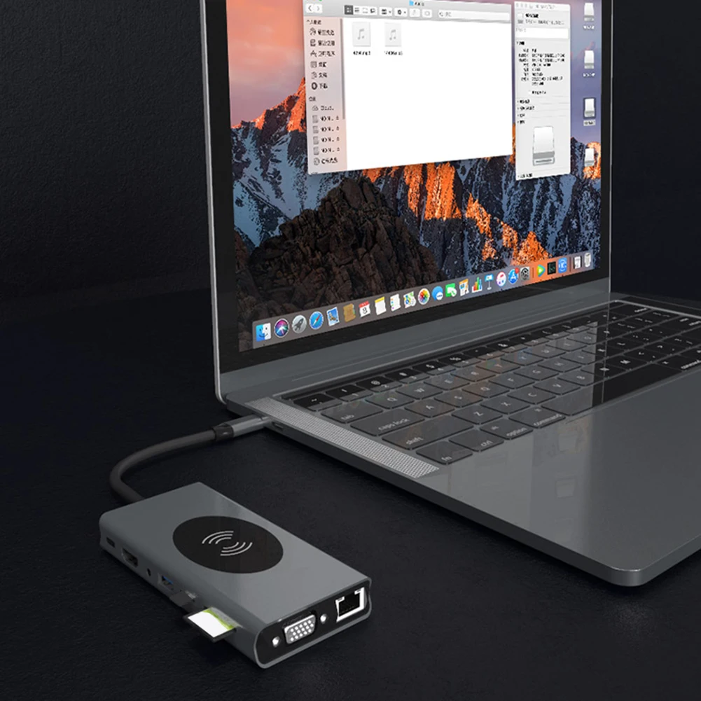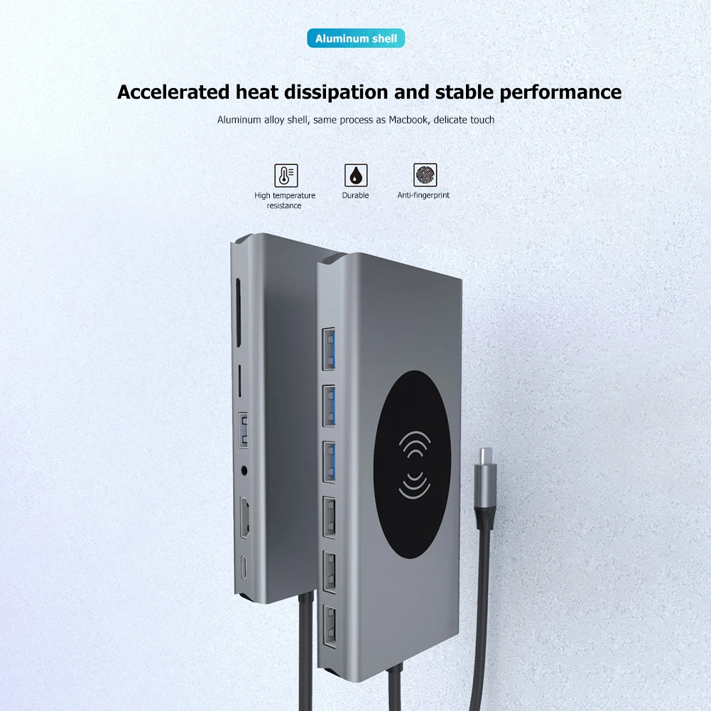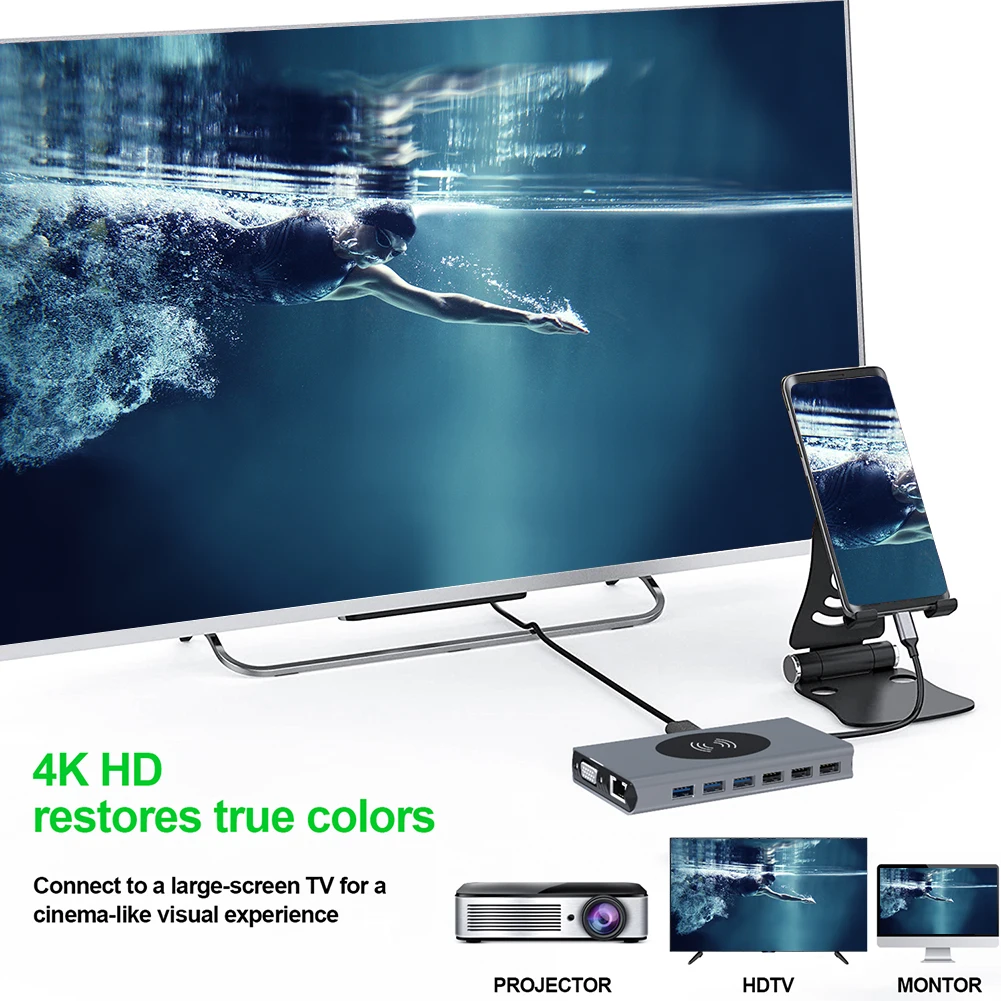 USB-концентратор 15 в 1 PD USB 3,0 TF 3,5 мм RJ45 Тип C для HDMI-совместимого VGA беспроводного зарядного устройства для бытовых компьютерных аксессуаров