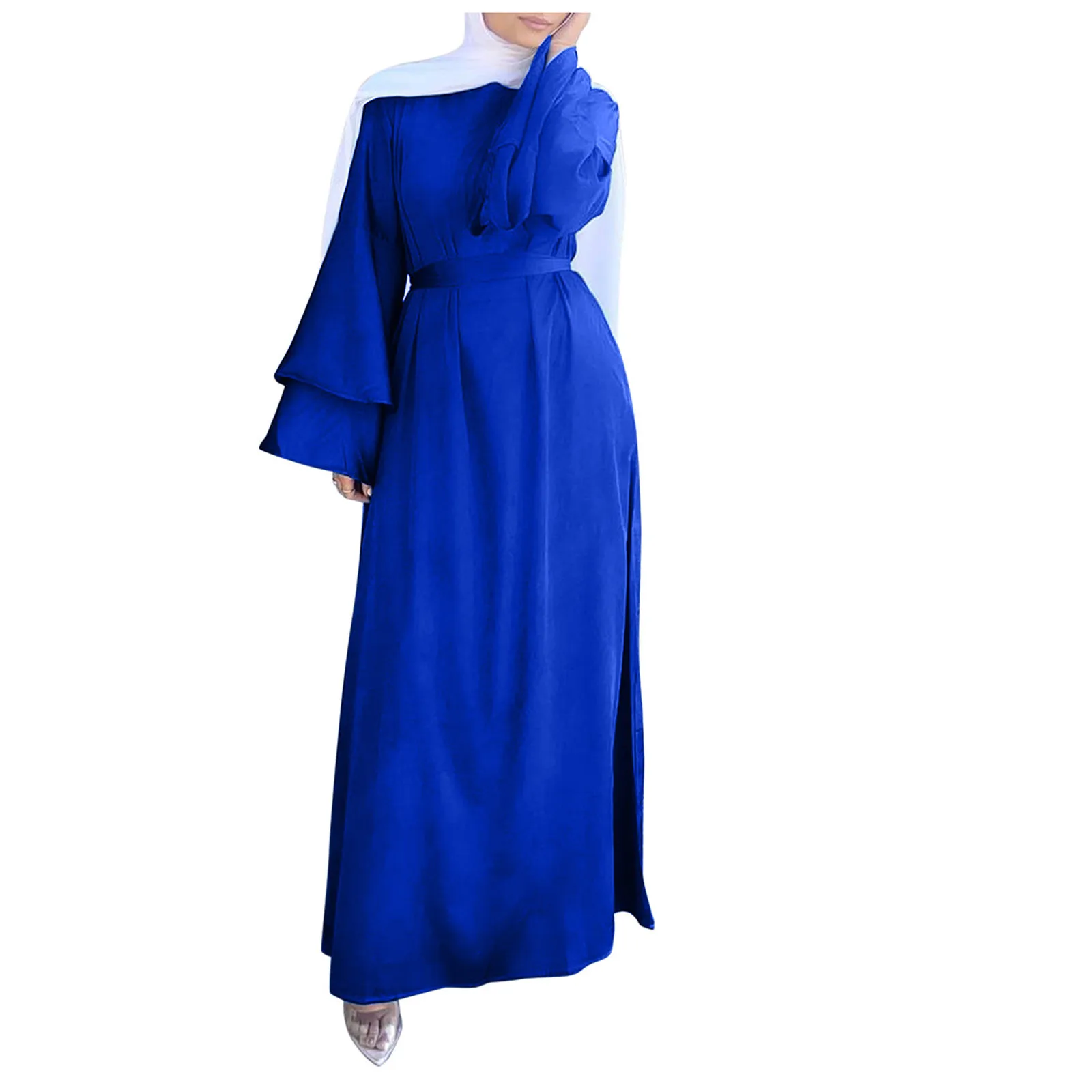 Платье мусульманское женское однотонное с длинным рукавом, модный атласный сарафан с мягкой талией, пикантный Сарафан