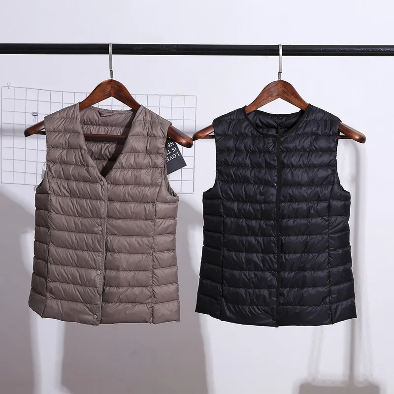 Женский ульсветильник пуховик на белом утином пуху, тонкое пальто, женская куртка без рукавов на утином пуху, пальто с V-образным вырезом или о-образным вырезом, 90%