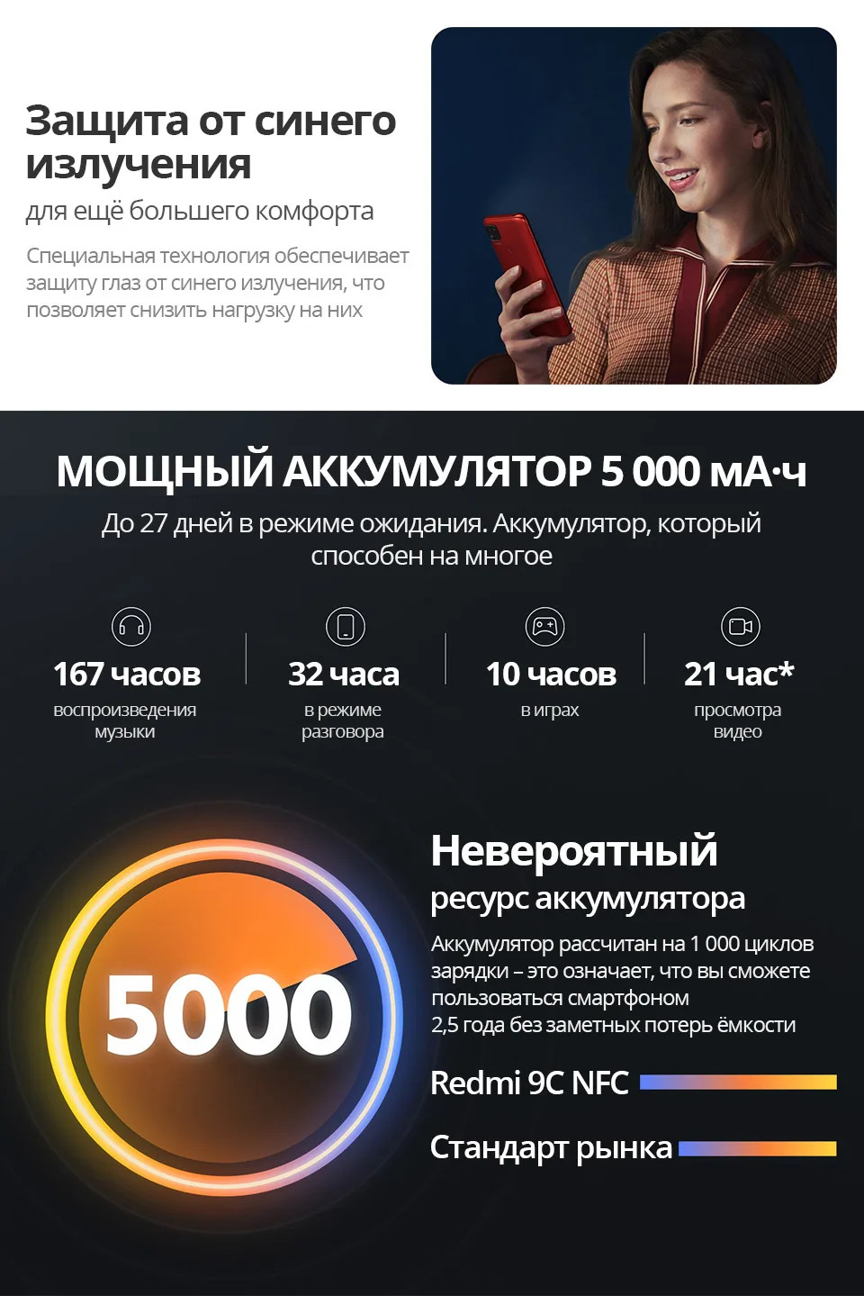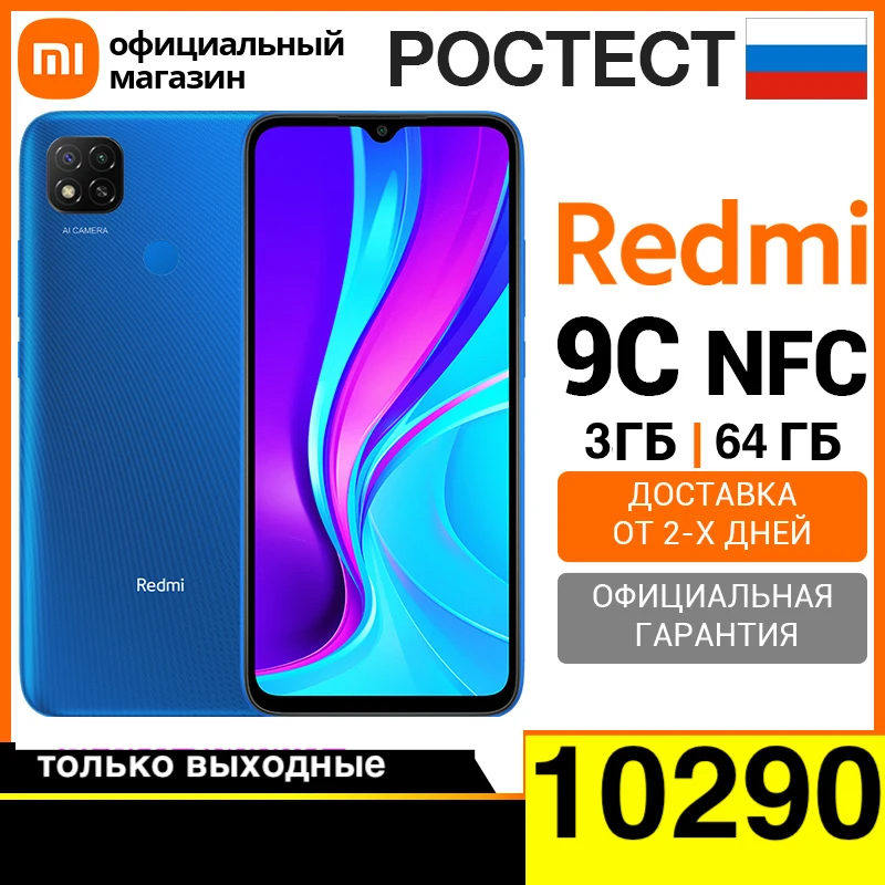 Смартфон Xiaomi Redmi 9C NFC 64ГБ Ростест, Доставка от 2 дня, Официальная гарантия
