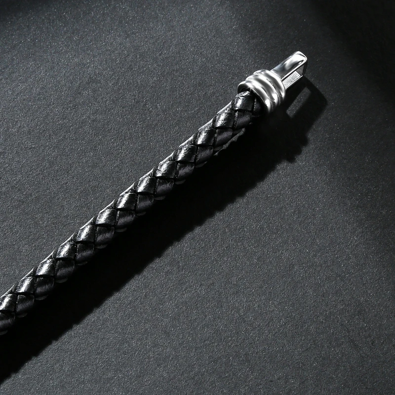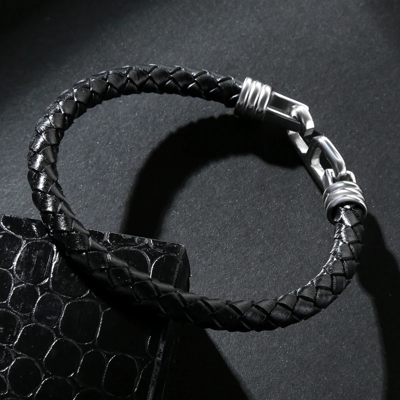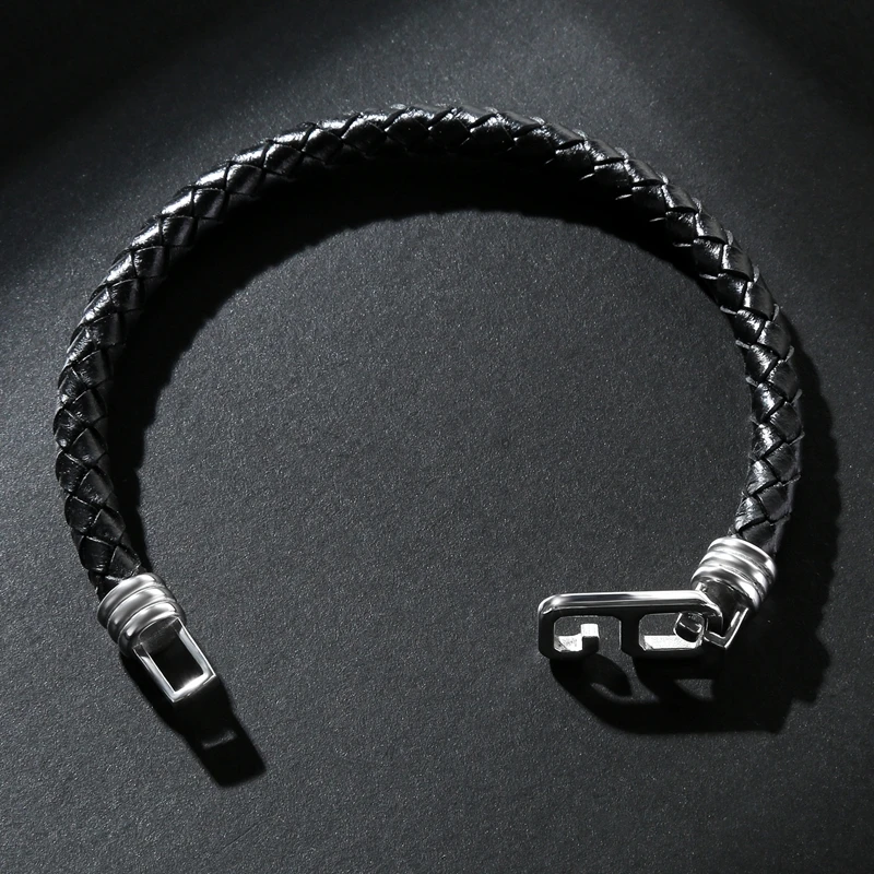 Изысканный плетеный кожаный браслет с защелками из нержавеющей стал...
