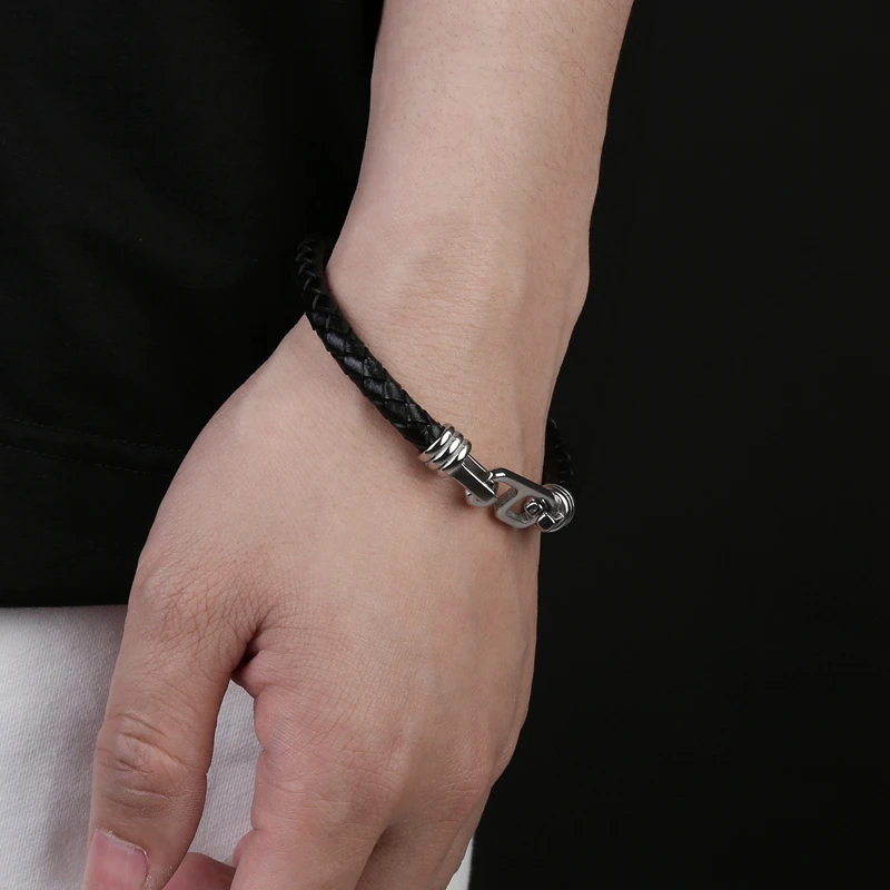 Простой плетеный кожаный мужской браслет с G-образной пряжкой из не...
