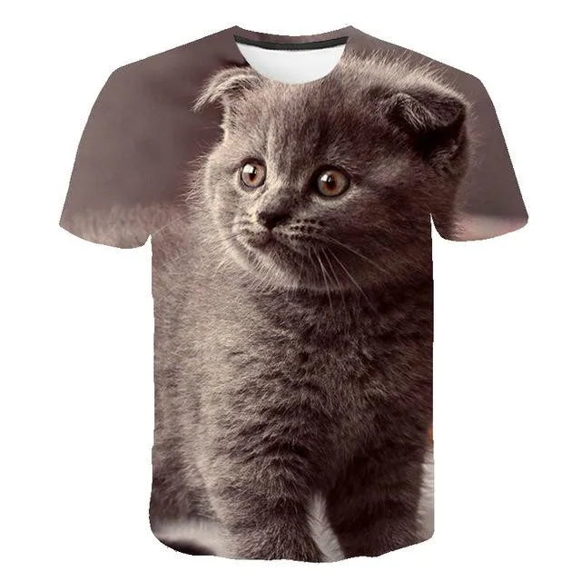 Летняя футболка с изображением животного, кошки, новинка 2021, с 3D...