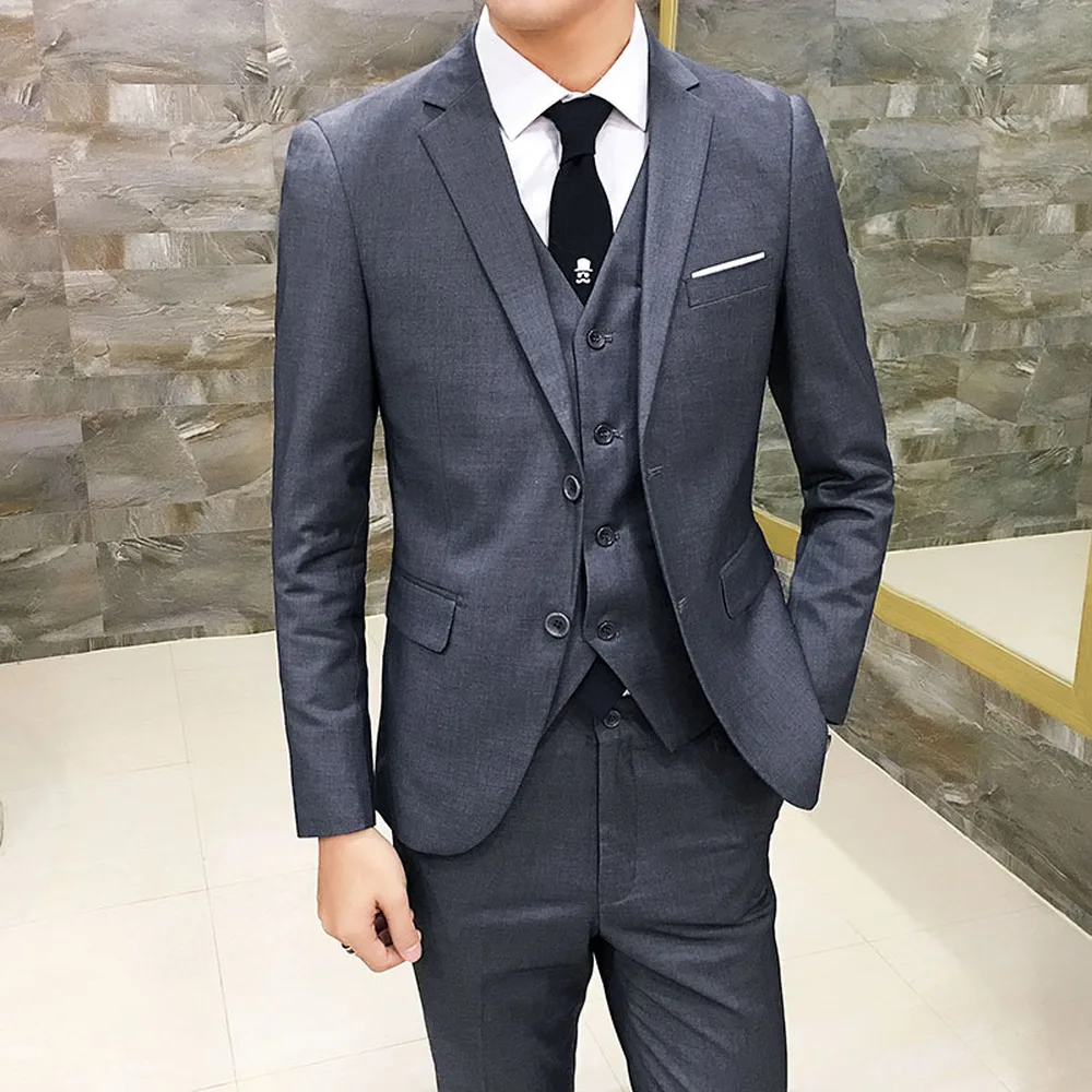 Костюм мужской из 3 предметов, однотонный, облегающий