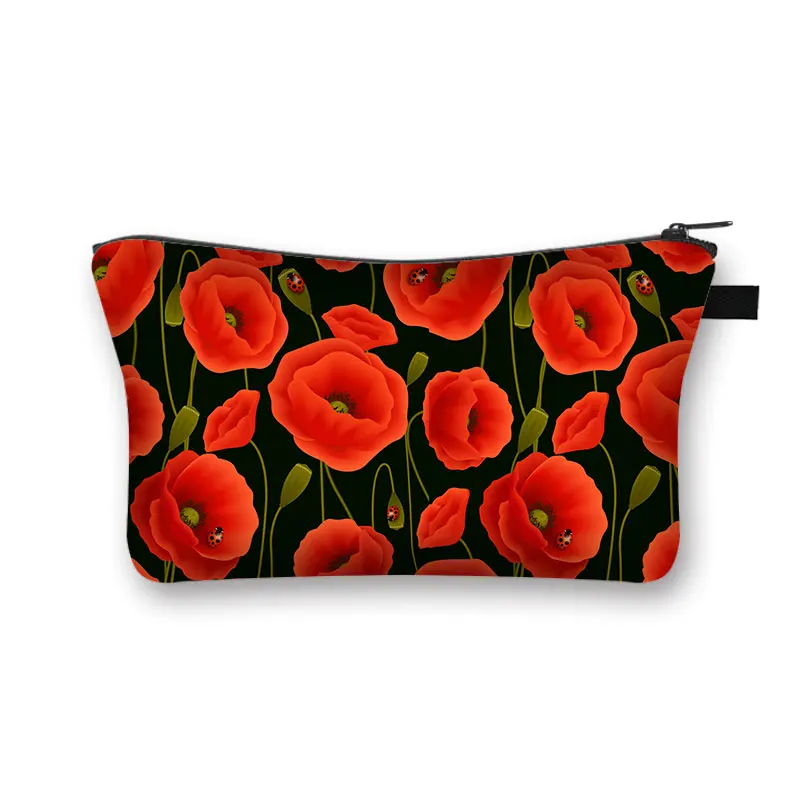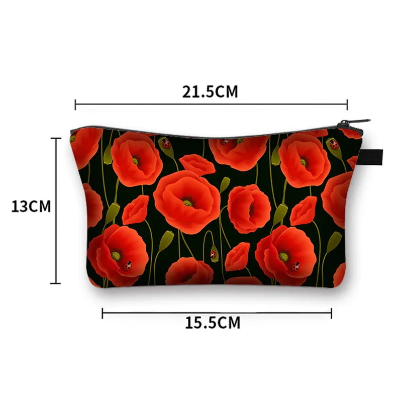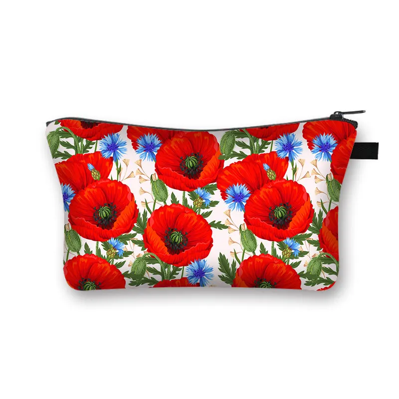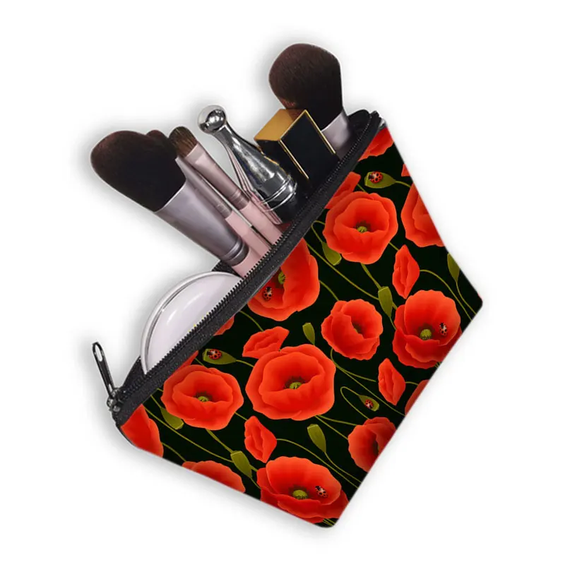Женская косметичка с красным маком и цветочным принтом, дамская сумочка для макияжа, маленькая дамская сумочка, саквояж для туалетных принадлежностей, чехол для косметики