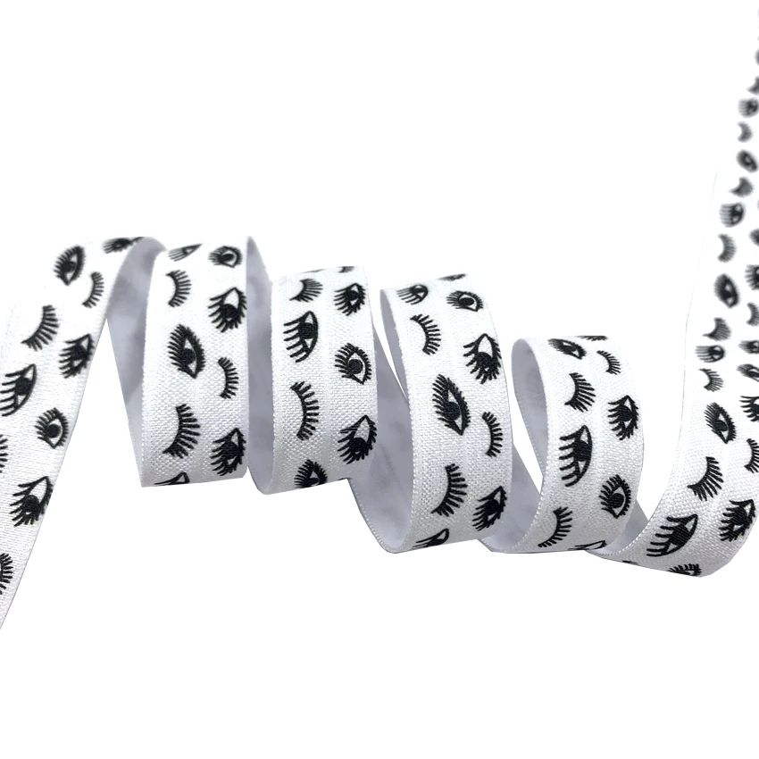 10 ярдов 15 мм глаза ресницы узоры печать складки над эластичной лентой для шитья волос галстук ремень украшение для рюкзака аксессуары