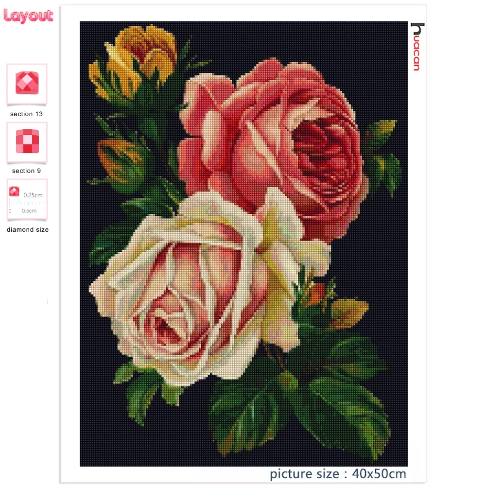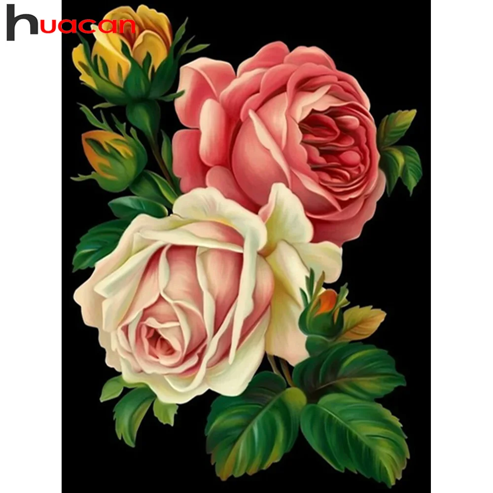 Huacan алмазов картина комплекты розы камни в форме ромбакруглой мозаикой и цветочной вышивкой Стразы фотографии домашний декор