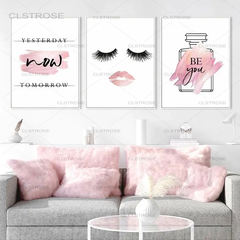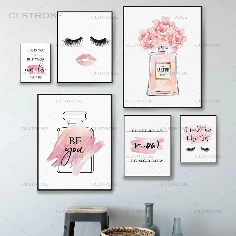 Картина на холсте, вывеска, флакон для духов, губ, макияж, модное современное искусство на стену, акварель, розы, принт для девушек, спальни, художественный Декор