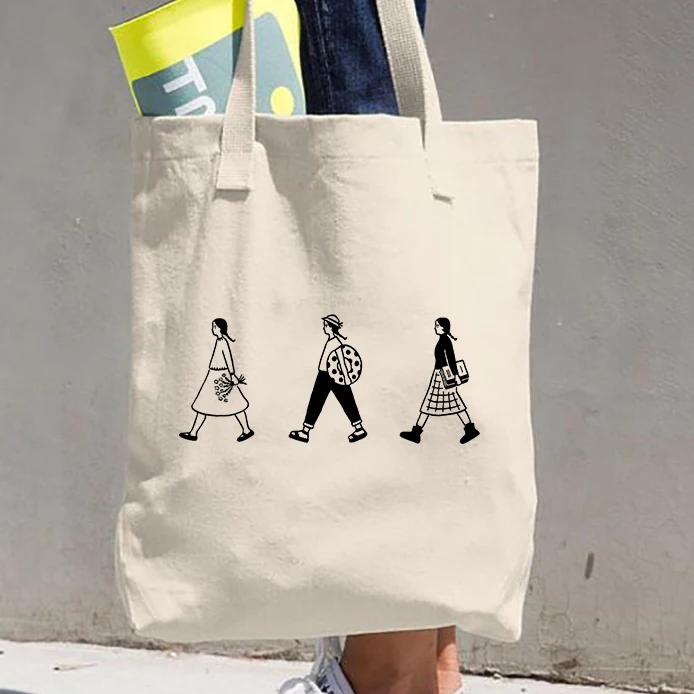 Холщовая женская сумка для покупок с принтом для девушек, Женская Х...