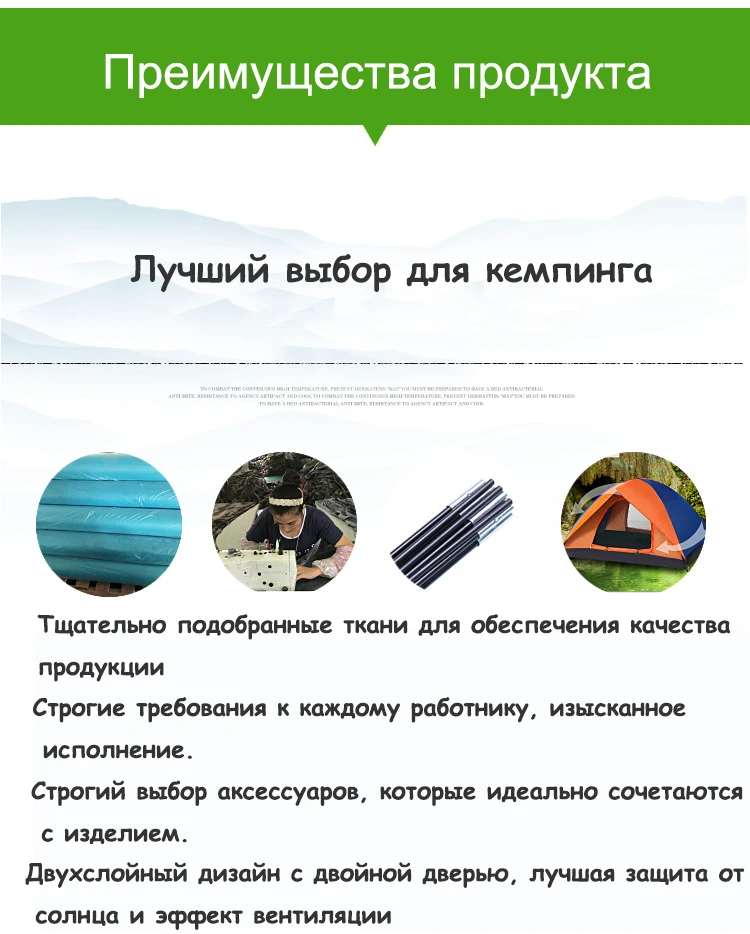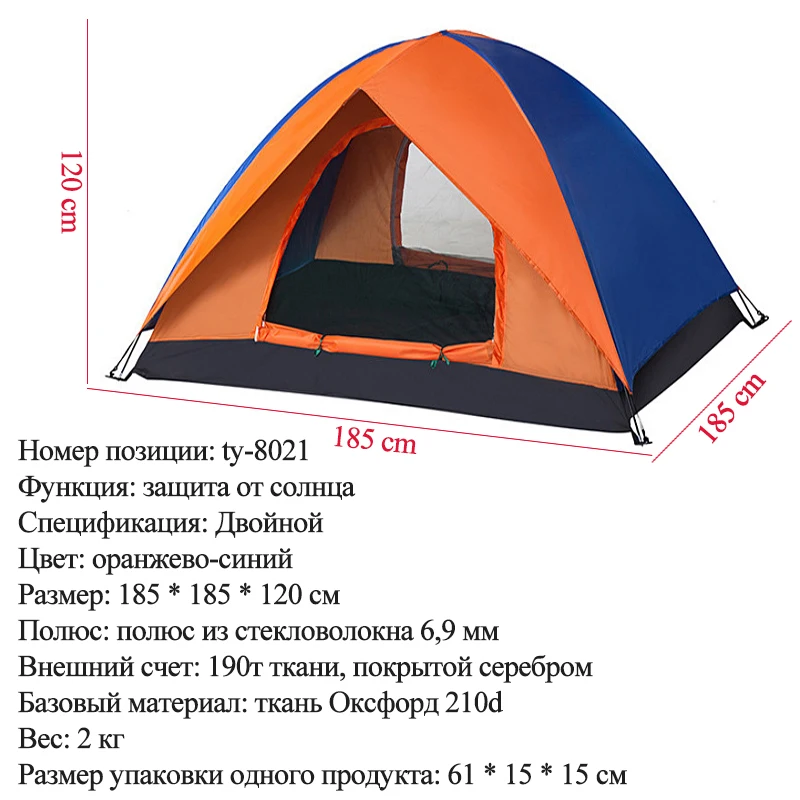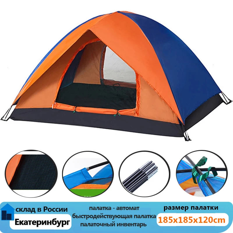 Туристическая палатка, Пляжная палатка на 3-4 человек, двухслойная водонепроницаемая, непродуваемая