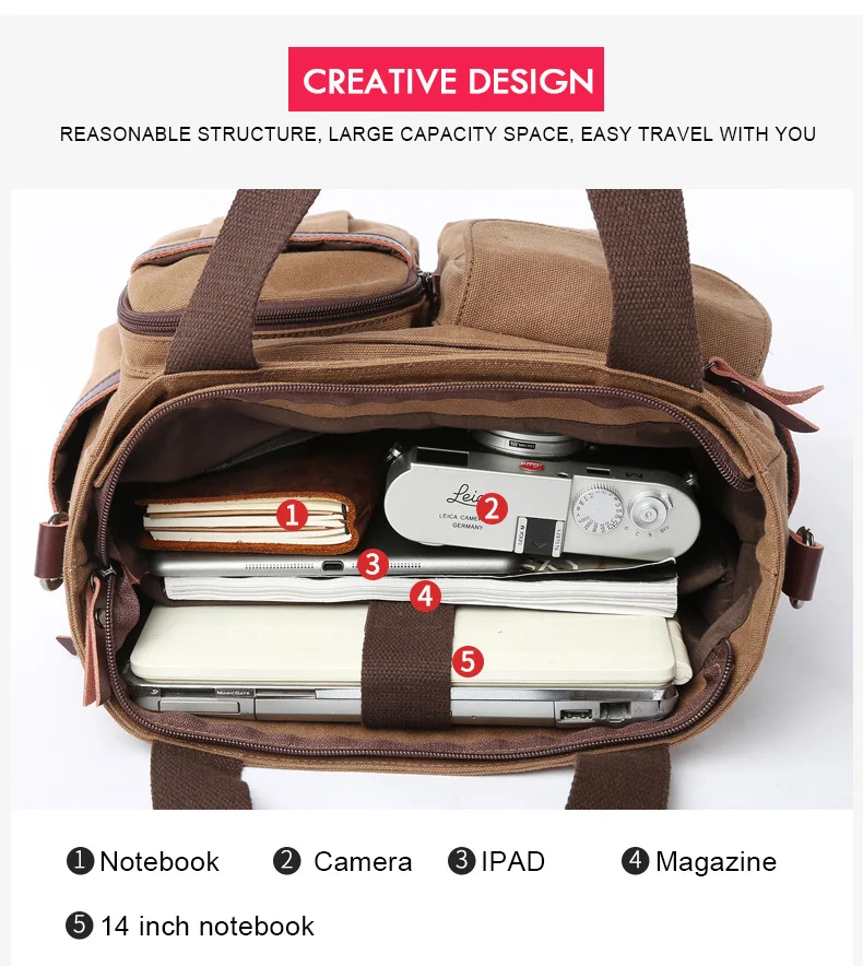 Сумка-тоут K004 Мужская, вместительная, холщовая, для ноутбука