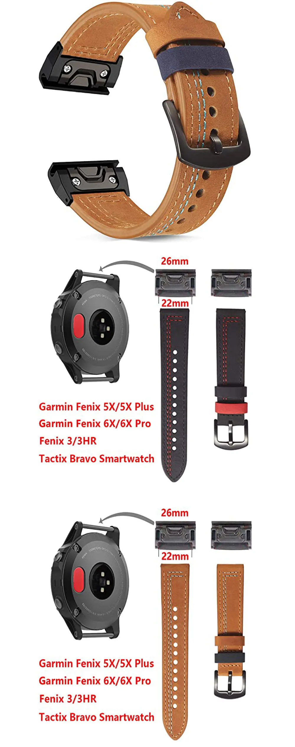 Кожаный ремешок для наручных часов Garmin Fenix 5 6 5X 6X, быстросъемный ремешок для Garmin Fenix 3 3HR 5X 5 Plus 6 Pro Forerunner 935 945