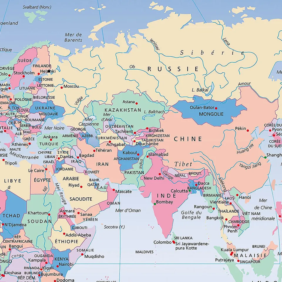 Карта мира, политическая карта на французском нетканом холсте, карт...