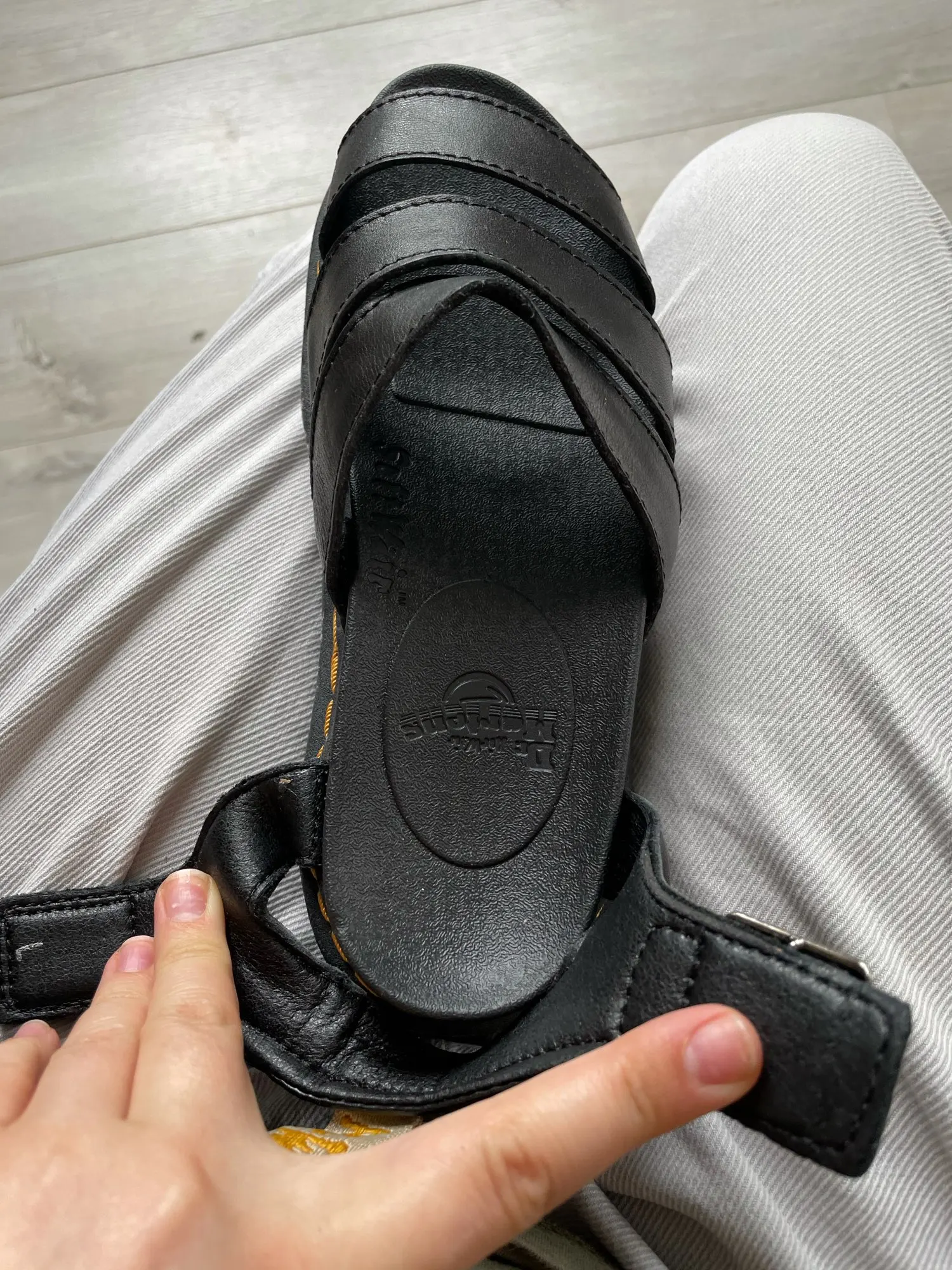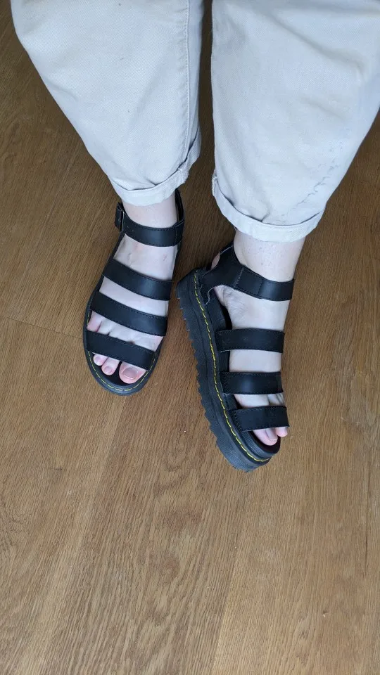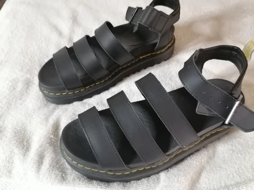 Сандали отличные! В жизни смотрятся супер стильно, как оригинальные Мартинсы. К качеству есть вопросы, потому что кое-где кожа отрезана неровно + я одела их пару раз, а резина спереди подошвы уже отрывается. В целом я довольна, надеюсь прослужат подольше)