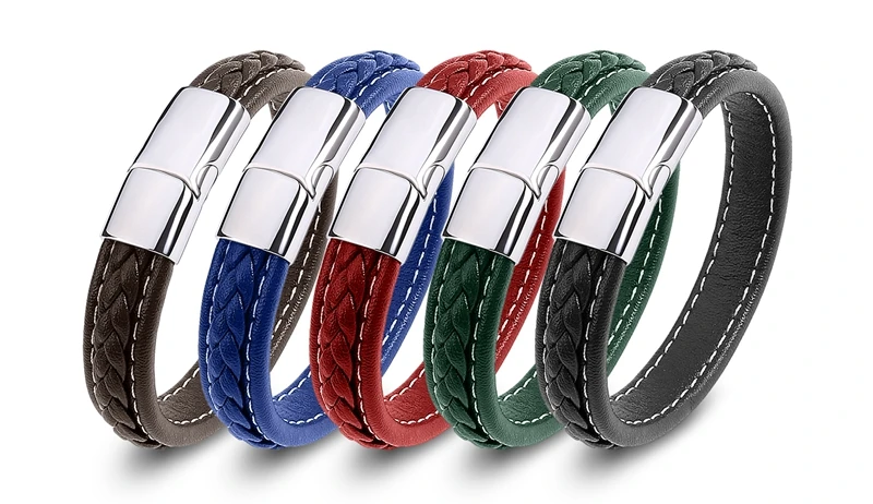 Модные мужские браслеты, плетеные кожаные браслеты из нержавеющей с...