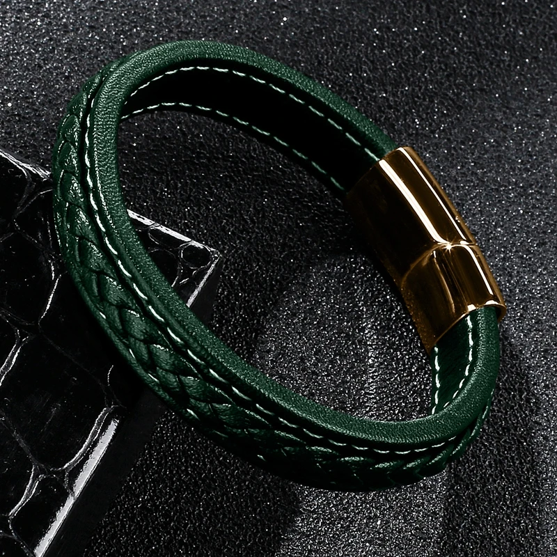 Изысканный плетеный кожаный браслет с защелками из нержавеющей стал...