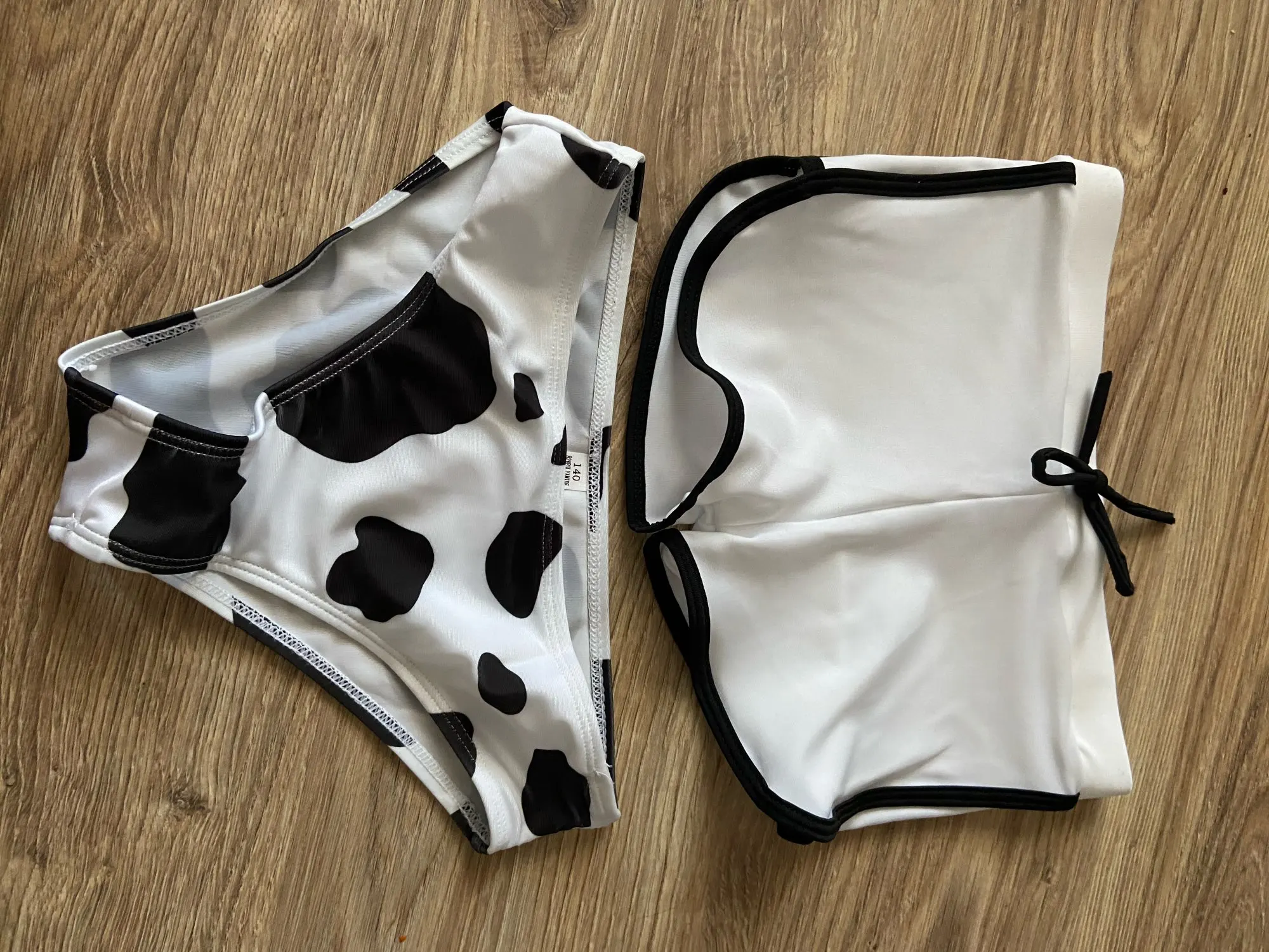 Комплект Детская одежда с рисунком из 3 предметов для маленьких девочек, летний купальник-бикини с изображением коровы, купальный костюм для От 8 до 12 лет