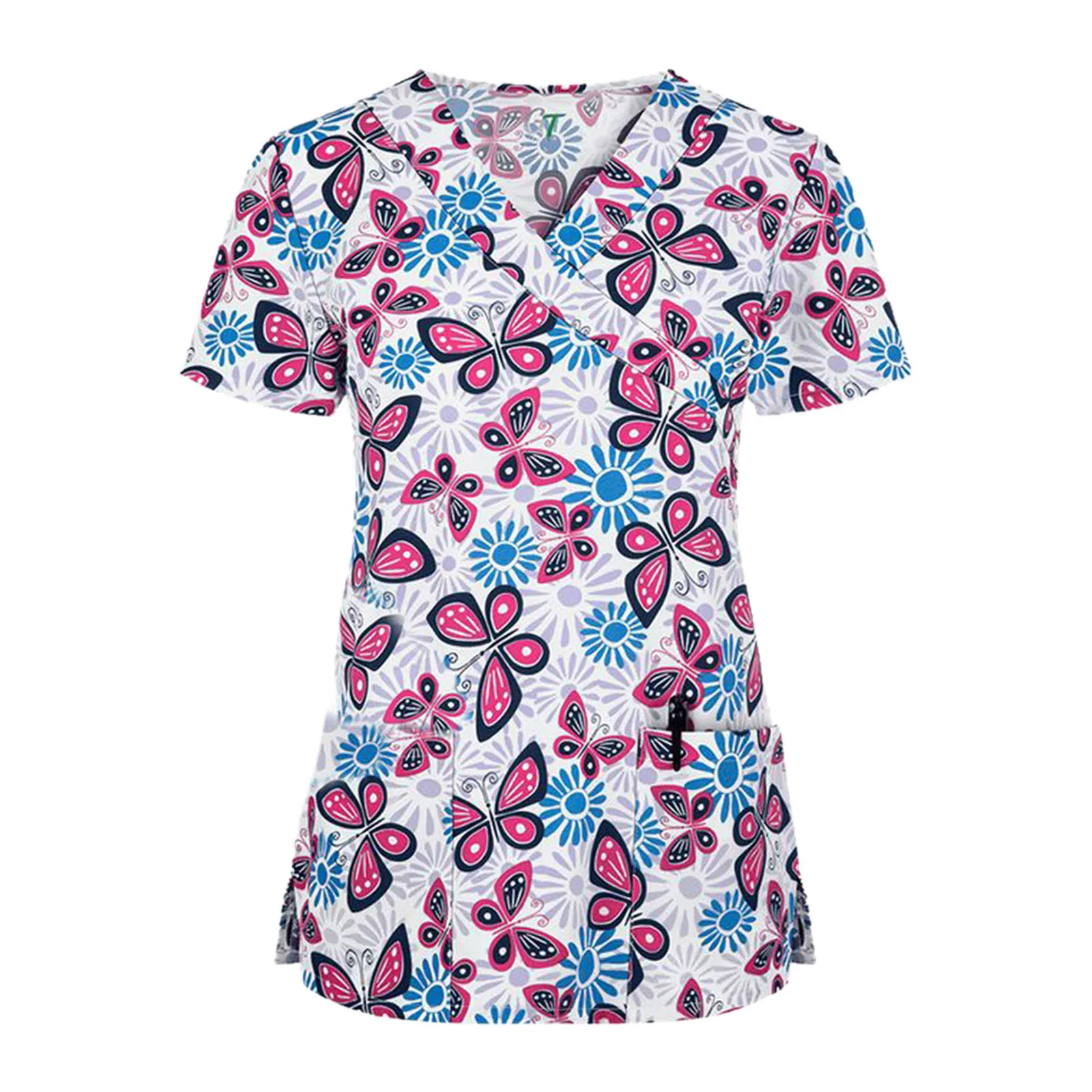 Униформа медсестры, топы, блузка с принтом бабочки, футболка с коро...