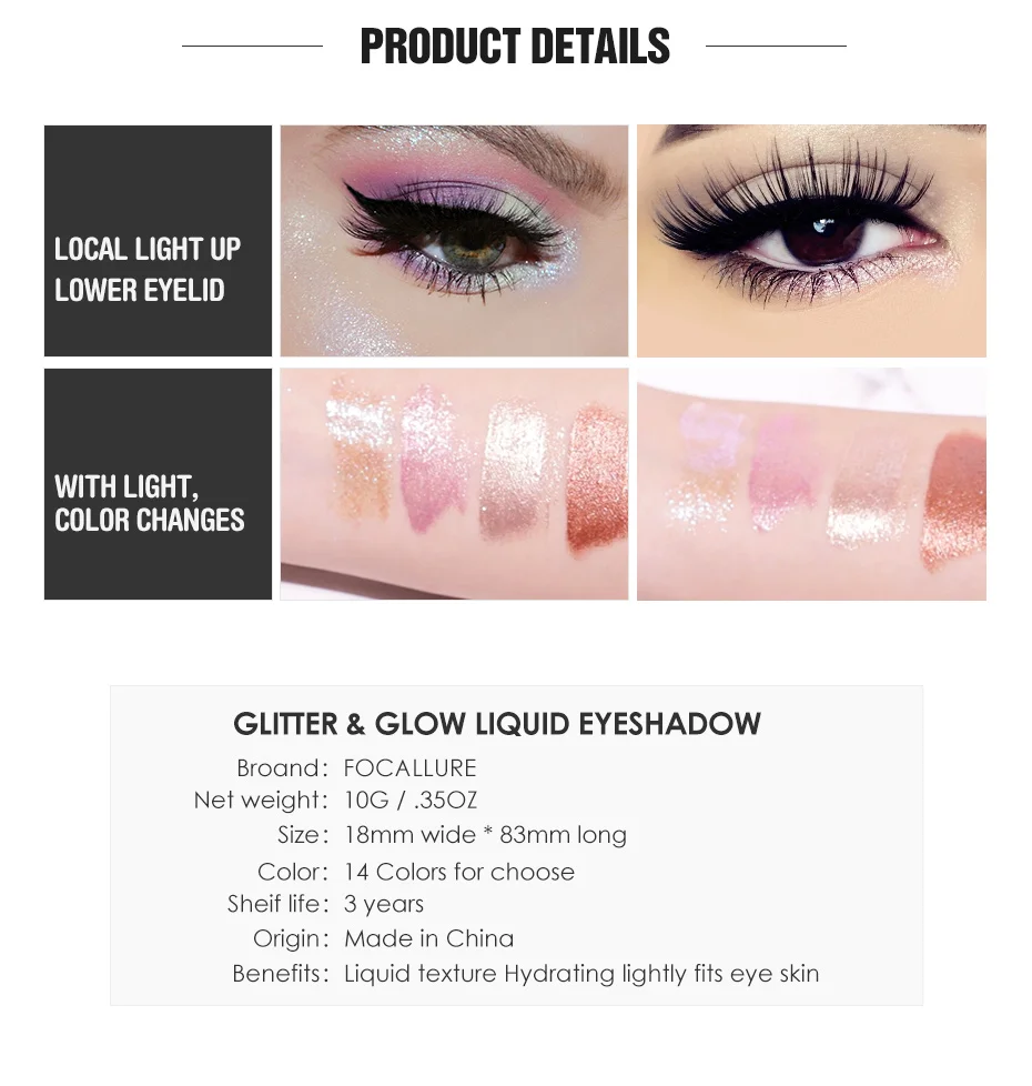 FOCALLURE океан светильник тени для век, Длительное Действие, блеск пигментированные жидкие тени для век Водонепроницаемый блестящие тени для век Мерцающая косметика