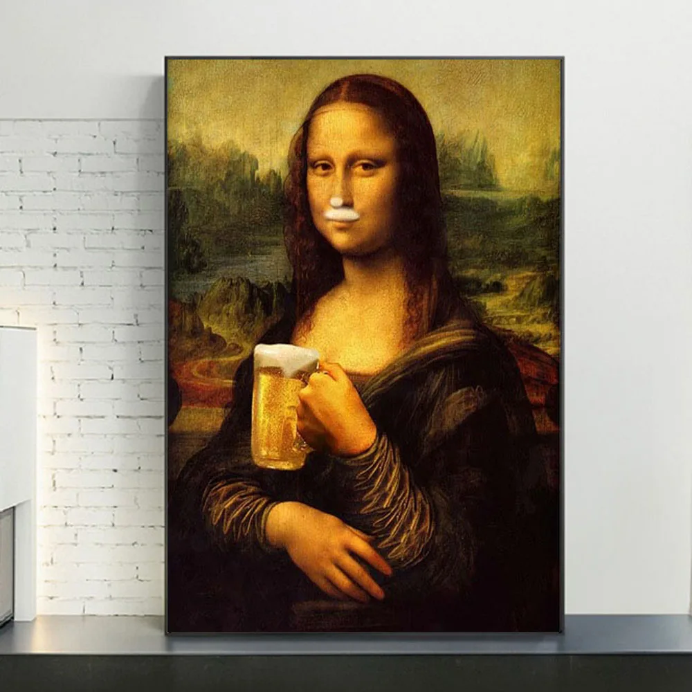 Забавный плакат лисы Моны, настенный арт, холст, плакат и печать, пивные усы, роспись с пузырями картины для гостиной, Современный домашний декор