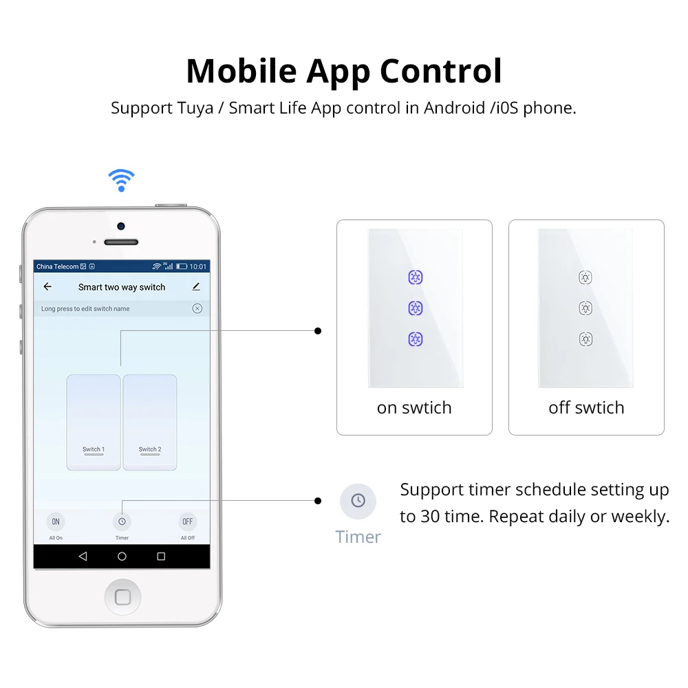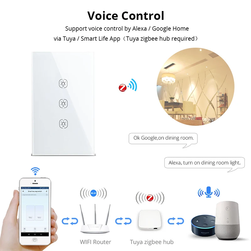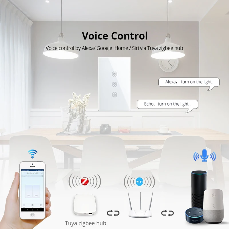 > Используйте популярные приложения smart life и Tuya android/ios. Как Alexa, Echo и Google Home, что облегчает жизнь. Даже если вы не дома, вы можете использовать мобильное приложение для удаленного управления устройством из любого места и управления освещением ВКЛ/ВЫКЛ в любое время.