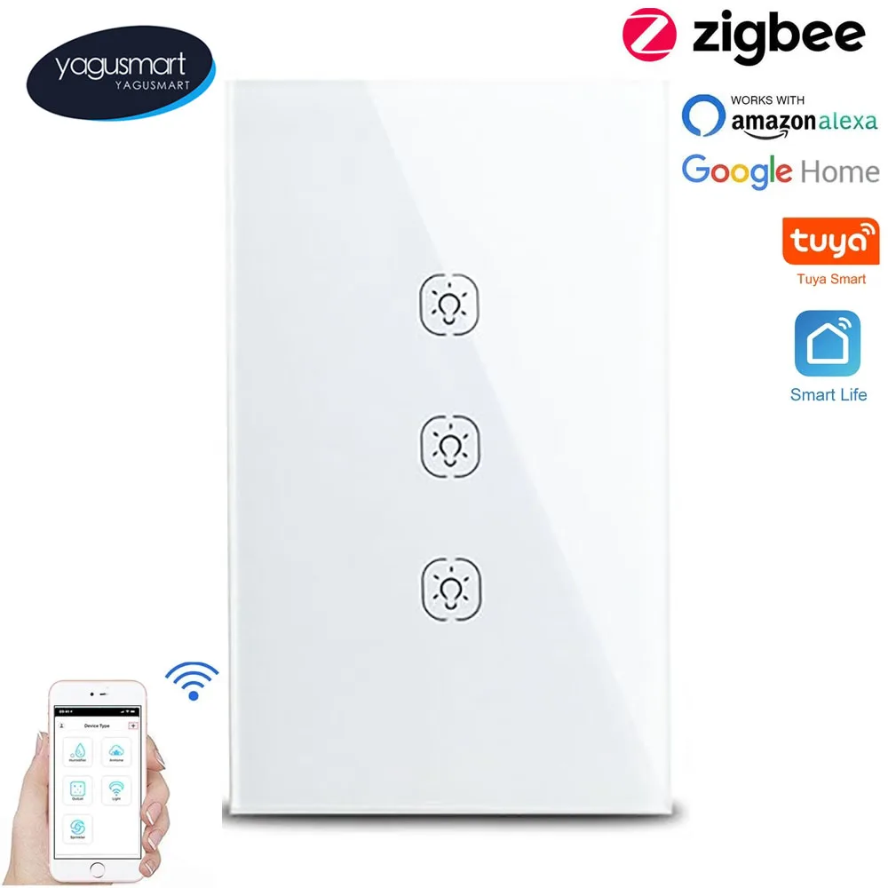 Умный переключатель Yagusmart Tuya Zigbee, не требуется нейтральный сенсорный светильник для США, работающий с Alexa Google Home 110-240 В