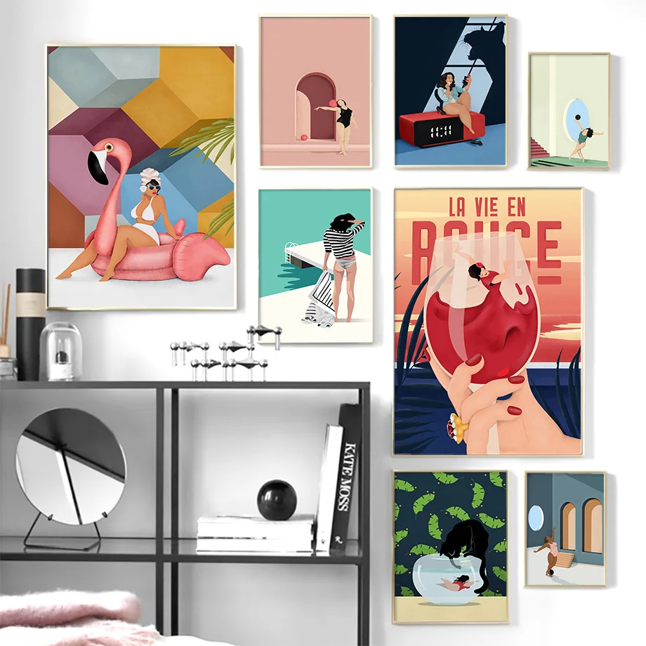 Модный розовый декоративный постер для комнаты для девушек, искусст...