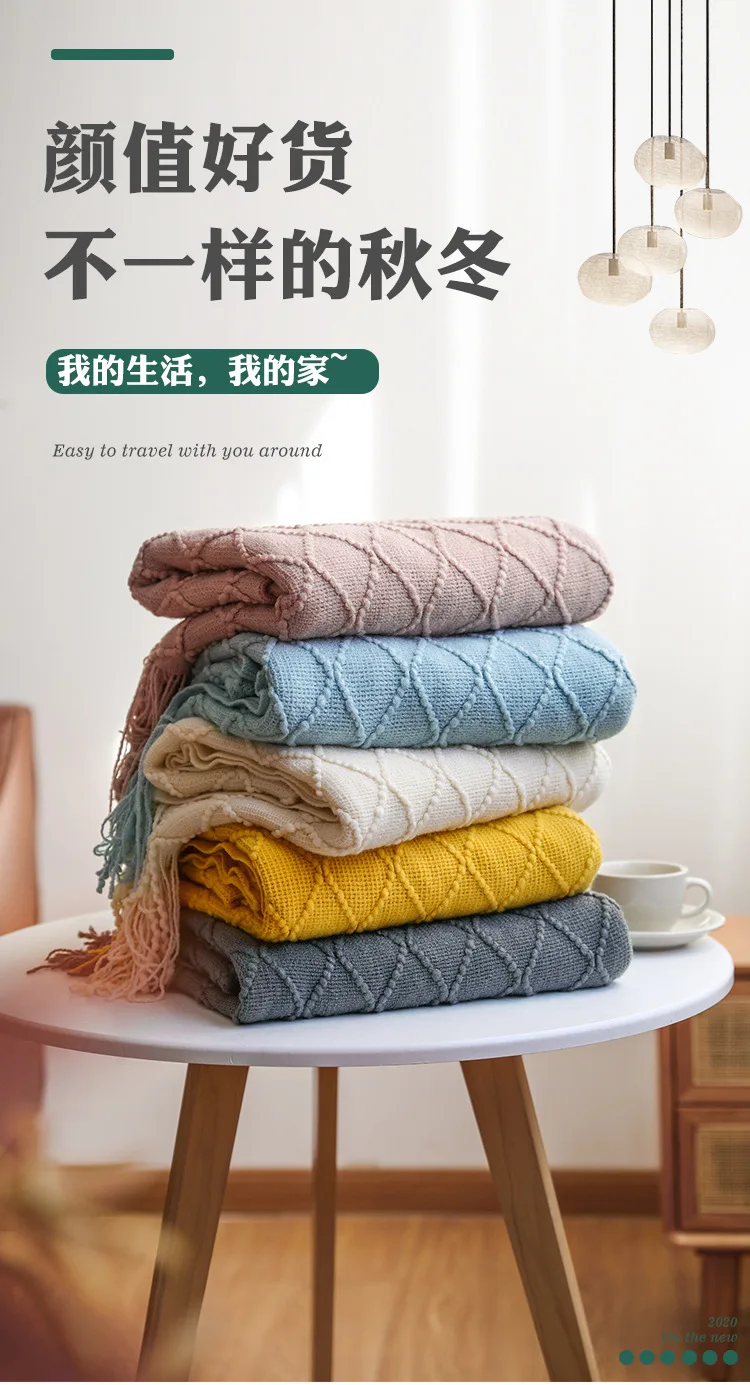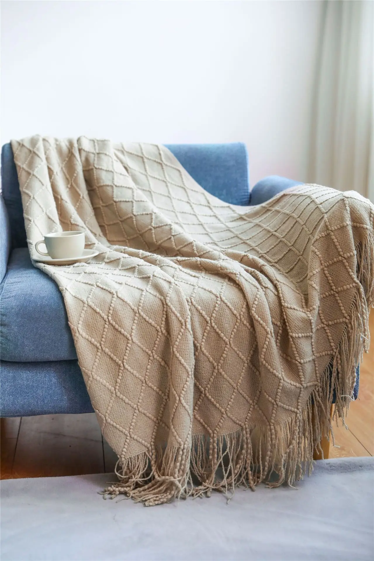 Текстильное городское кашемировое вязаное одеяло для дивана в норди...
