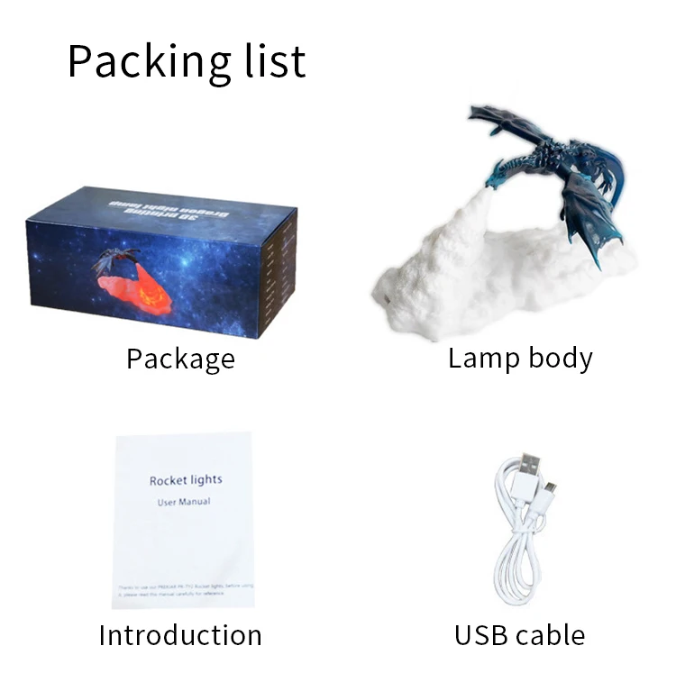 3d печатных лампы спрей огненного дракона Ночная Usb Перезаряжаемые...