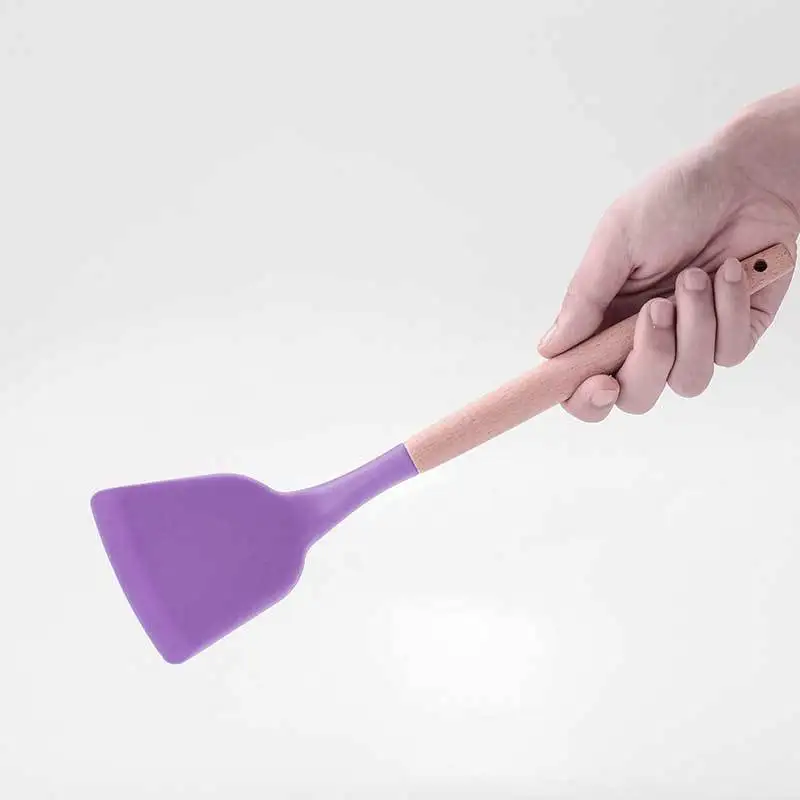 Фиолетовый силиконовый Кухня набор посуды с бамбуковой ручкой большая ложка набор шпателей из Кухня аксессуары Пособия по кулинарии посуда Кухня инструменты