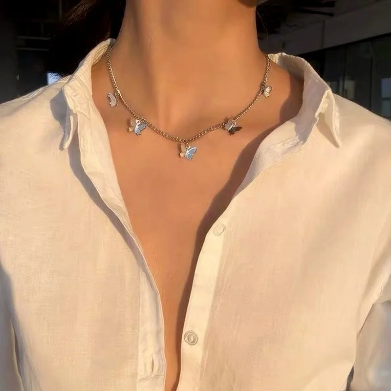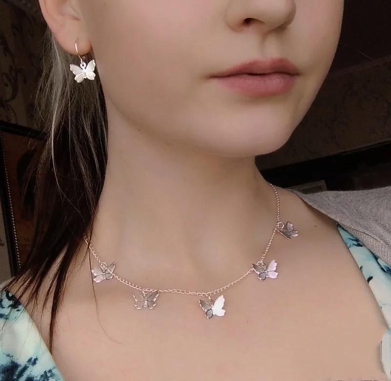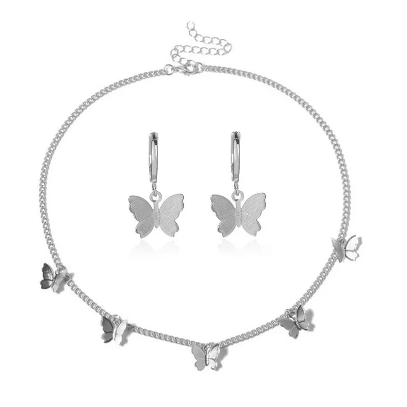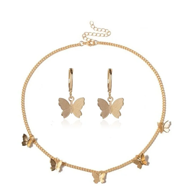 Богемные серьги в стиле панк, ожерелье, комплект ювелирных изделий, серьги-гвоздики в форме бабочки золотого и серебряного цвета, лучшие подарки для женщин и девочек