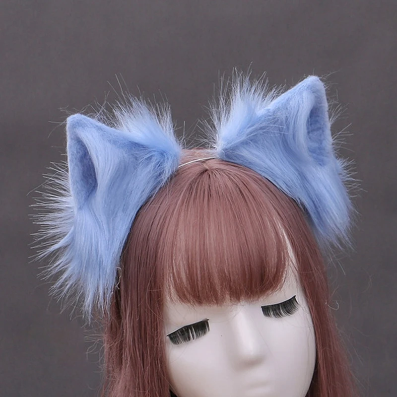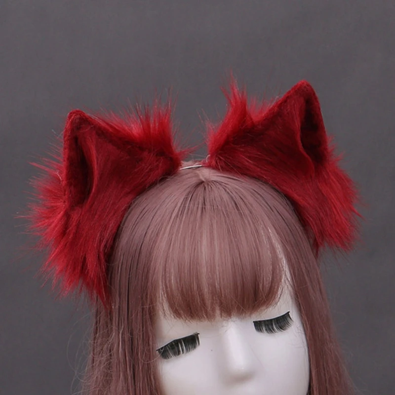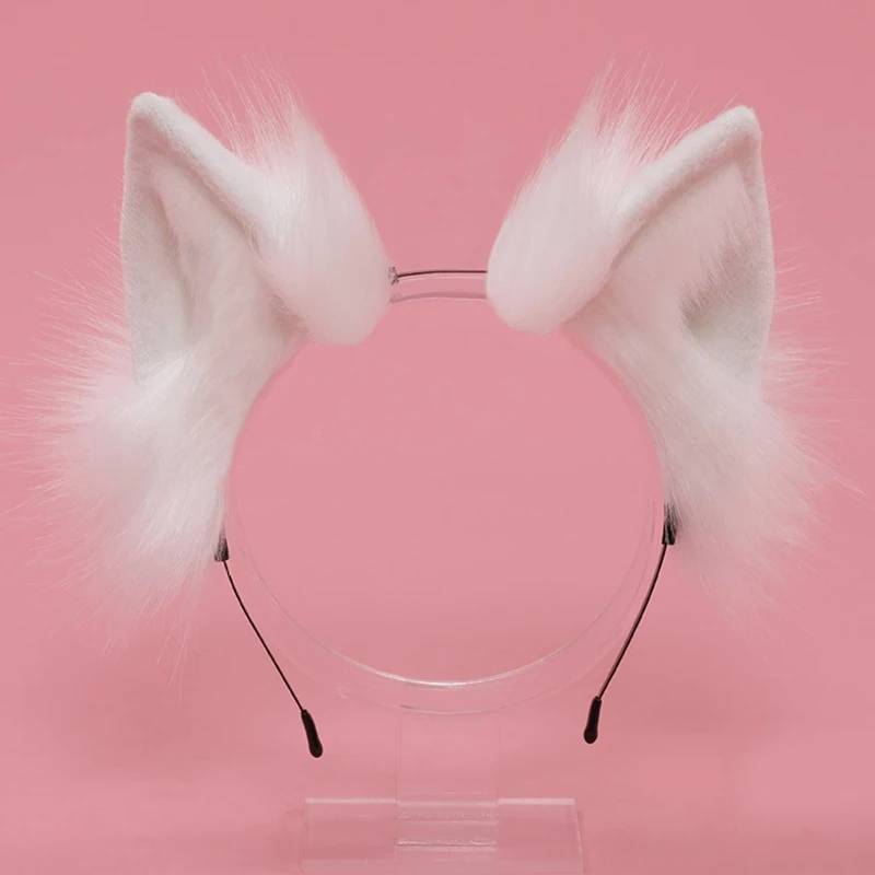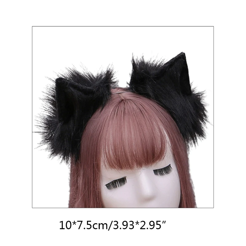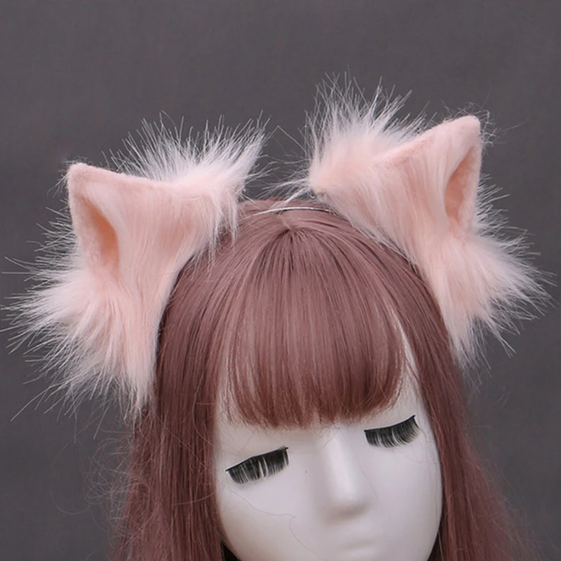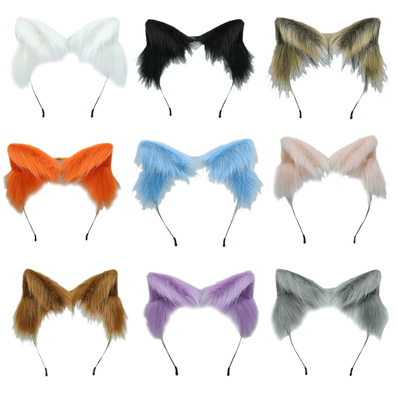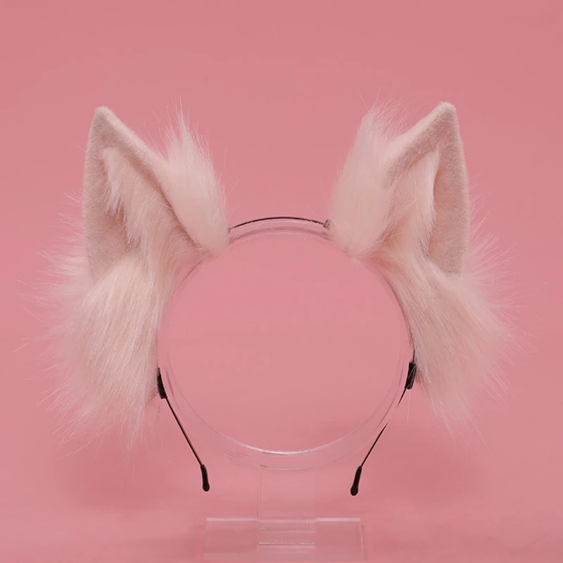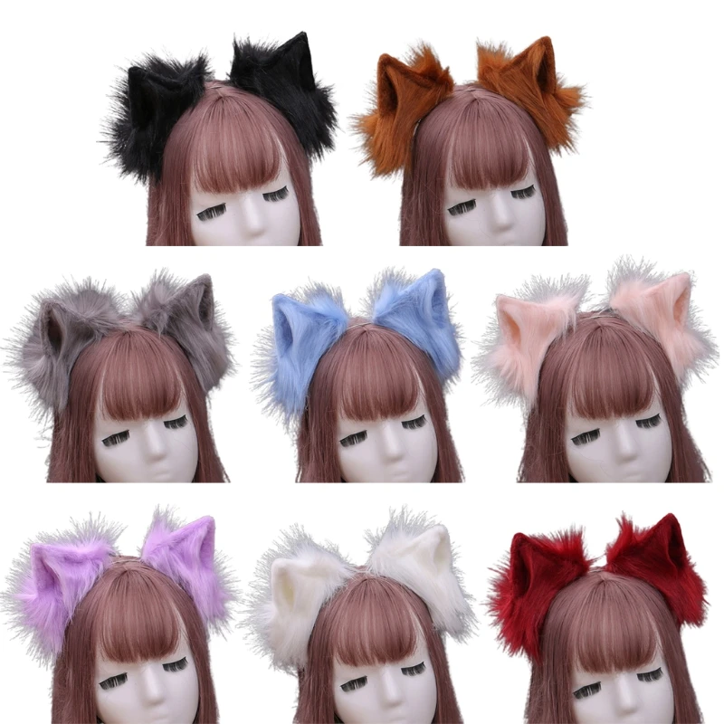 Обруч для волос ручной работы с имитацией искусственного меха, Реалистичная однотонная пушистая плюшевая заколка с волчьими ушками, костюм для косплея