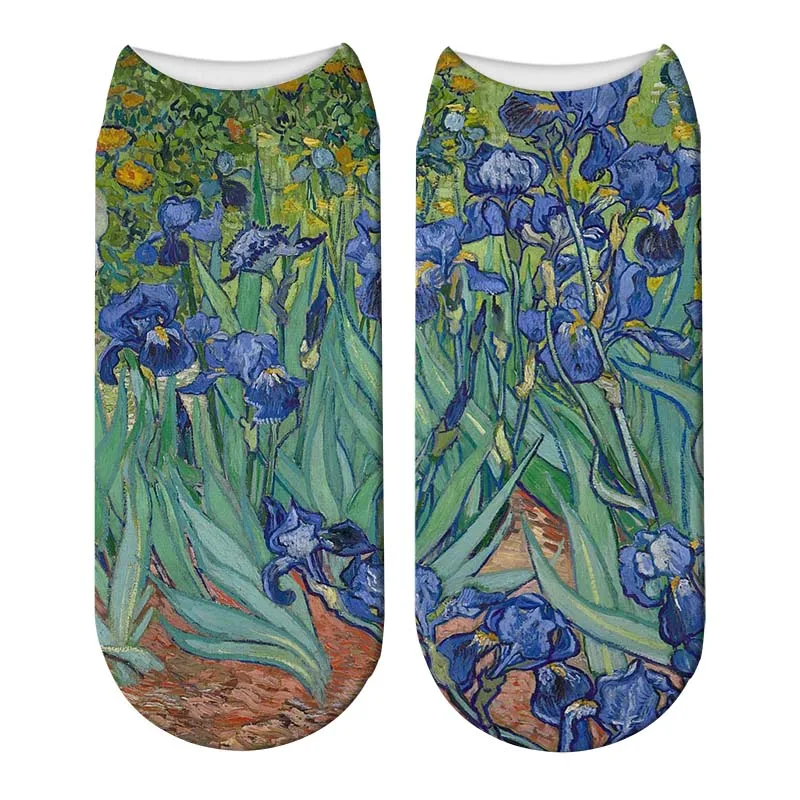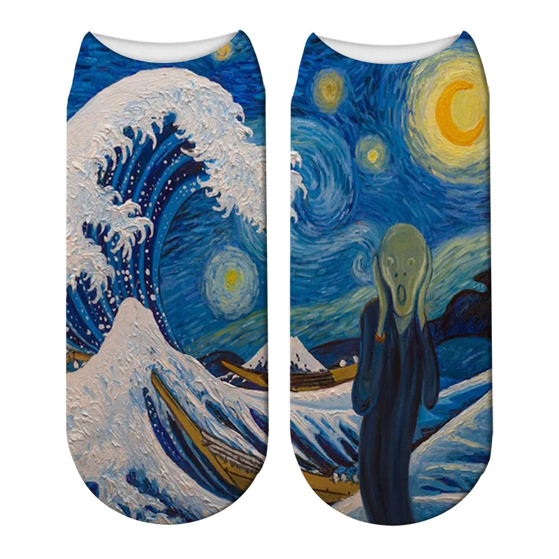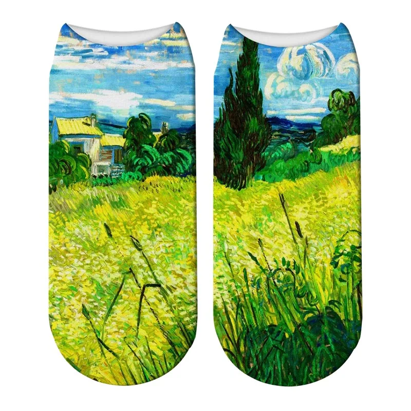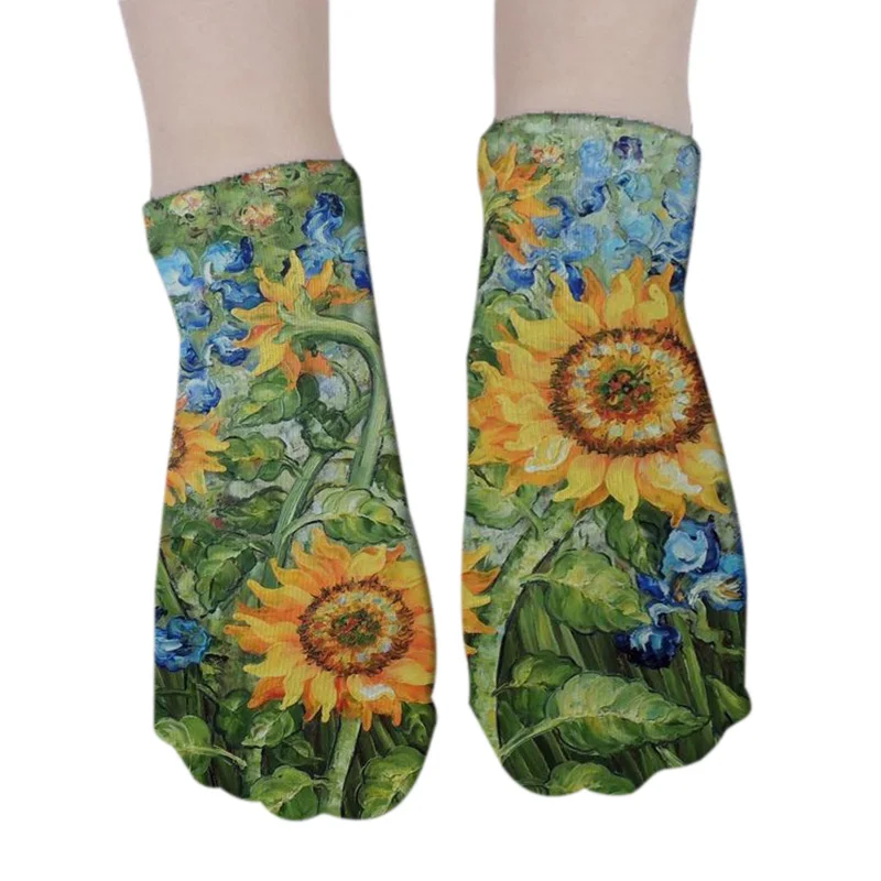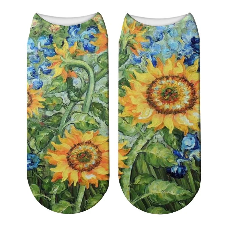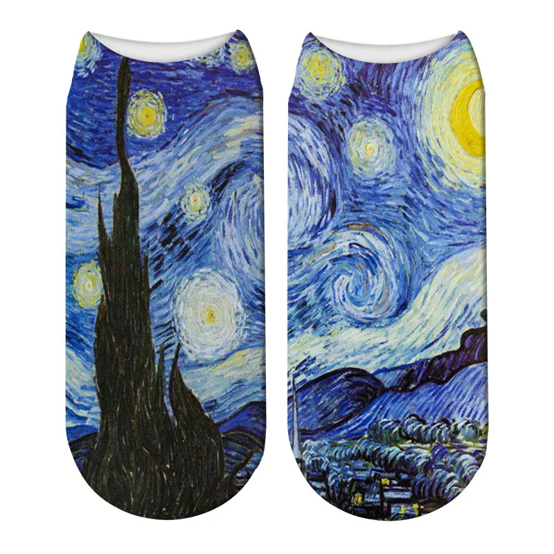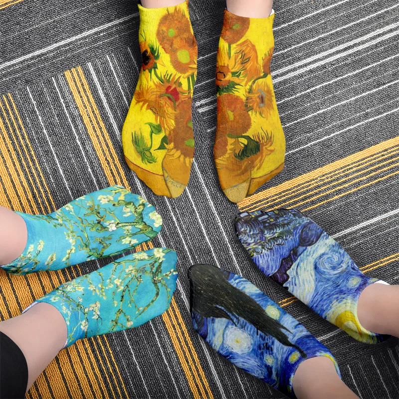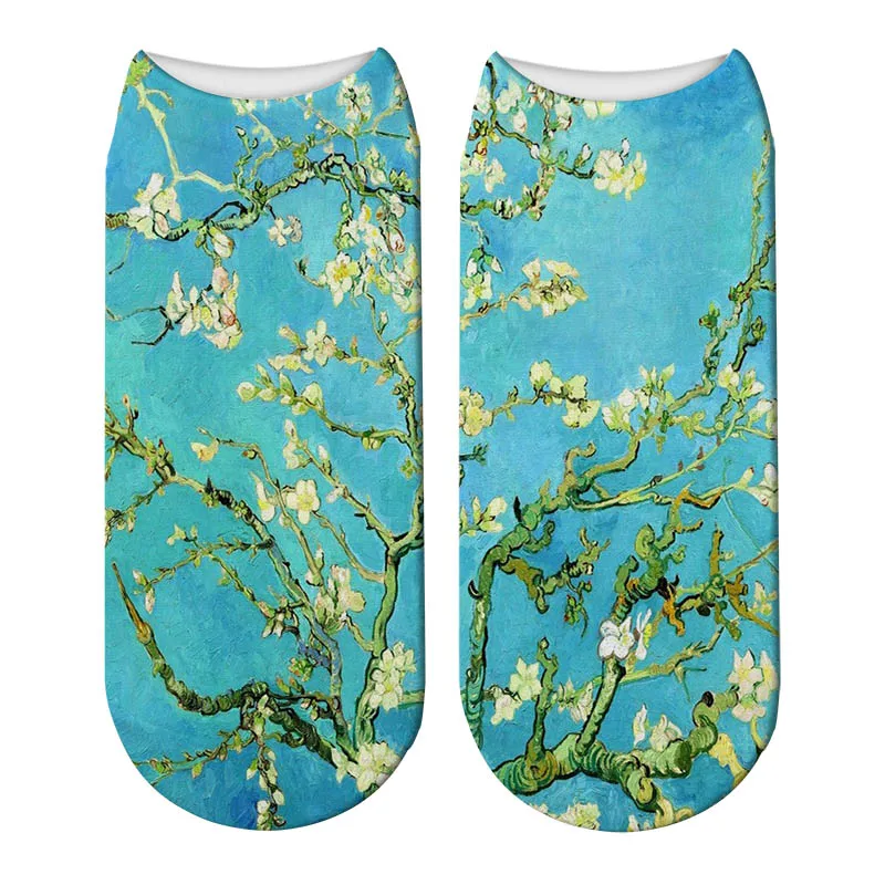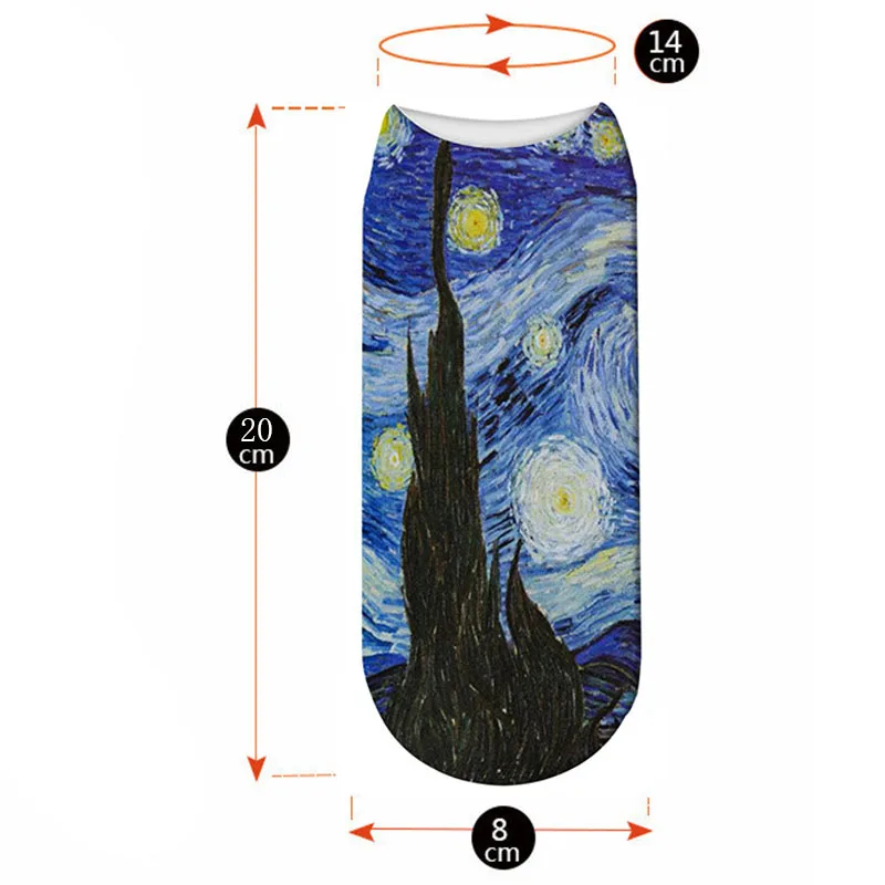 Носки женские с рисунком Ван Гога, Смешные Короткие хлопковые носки унисекс с рисунком масляной живописи, звездная ночь, Подсолнух, повседневные