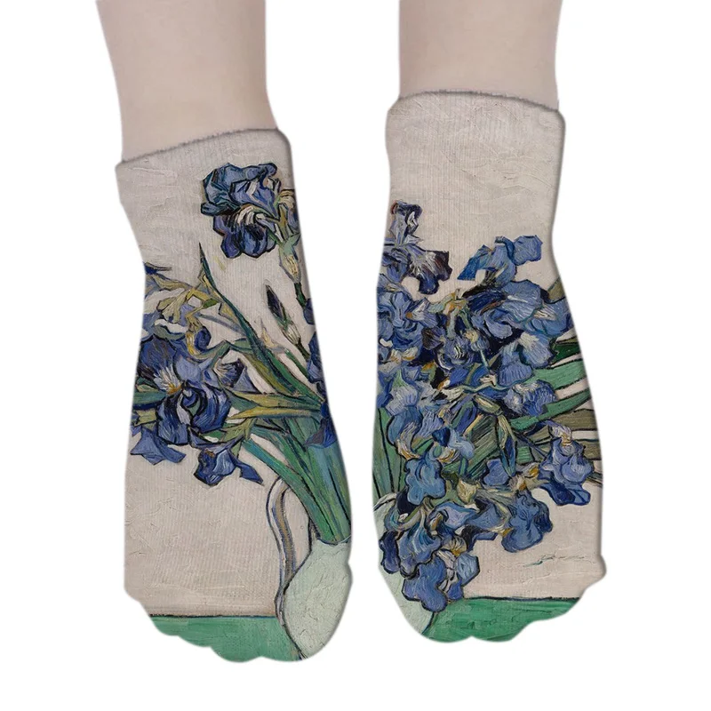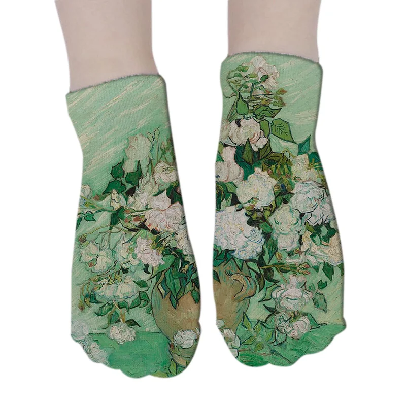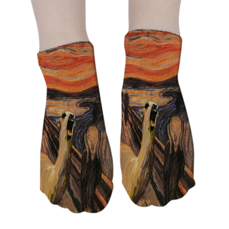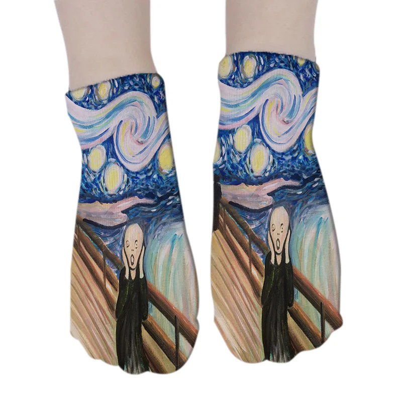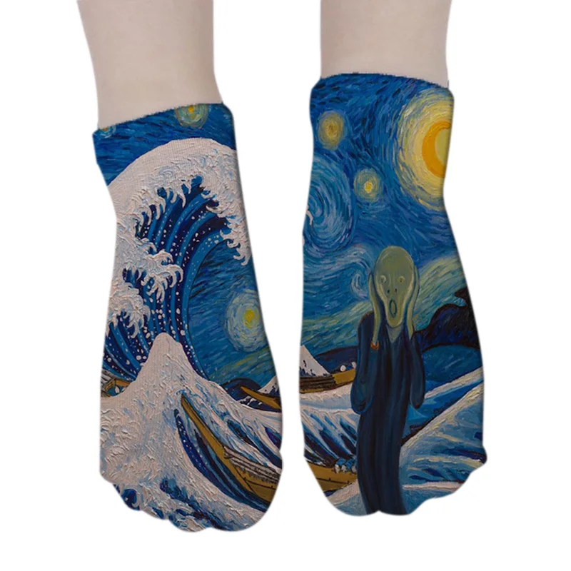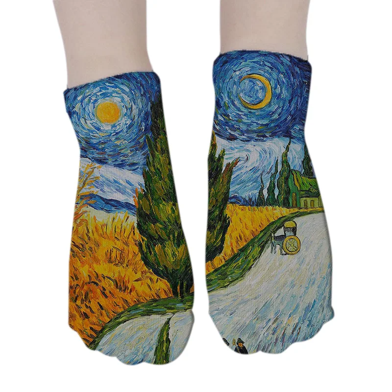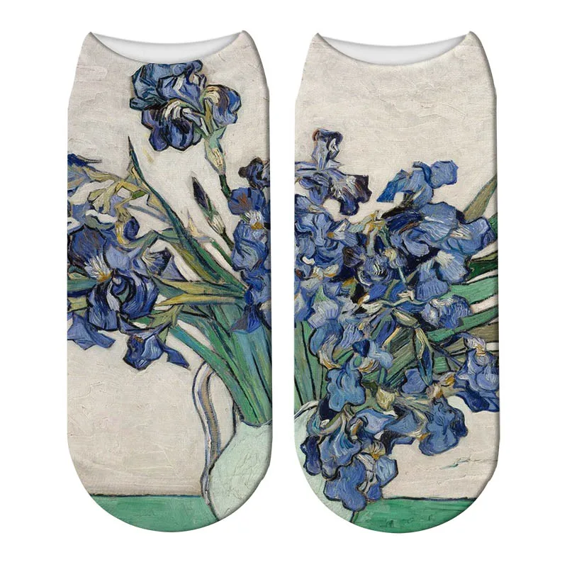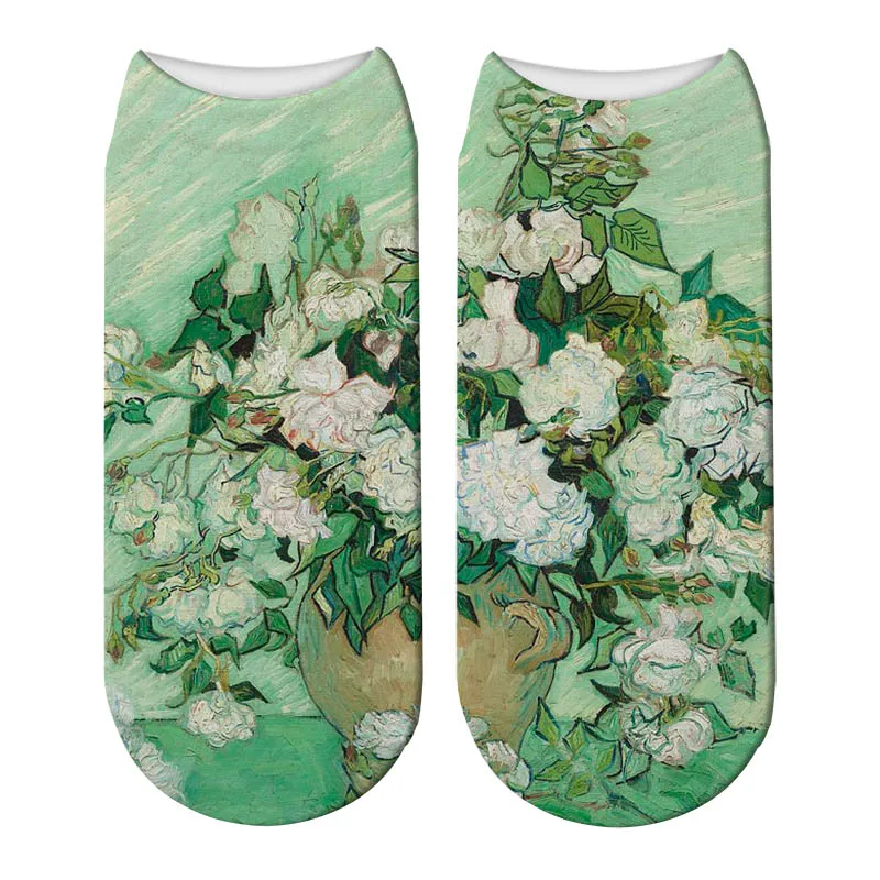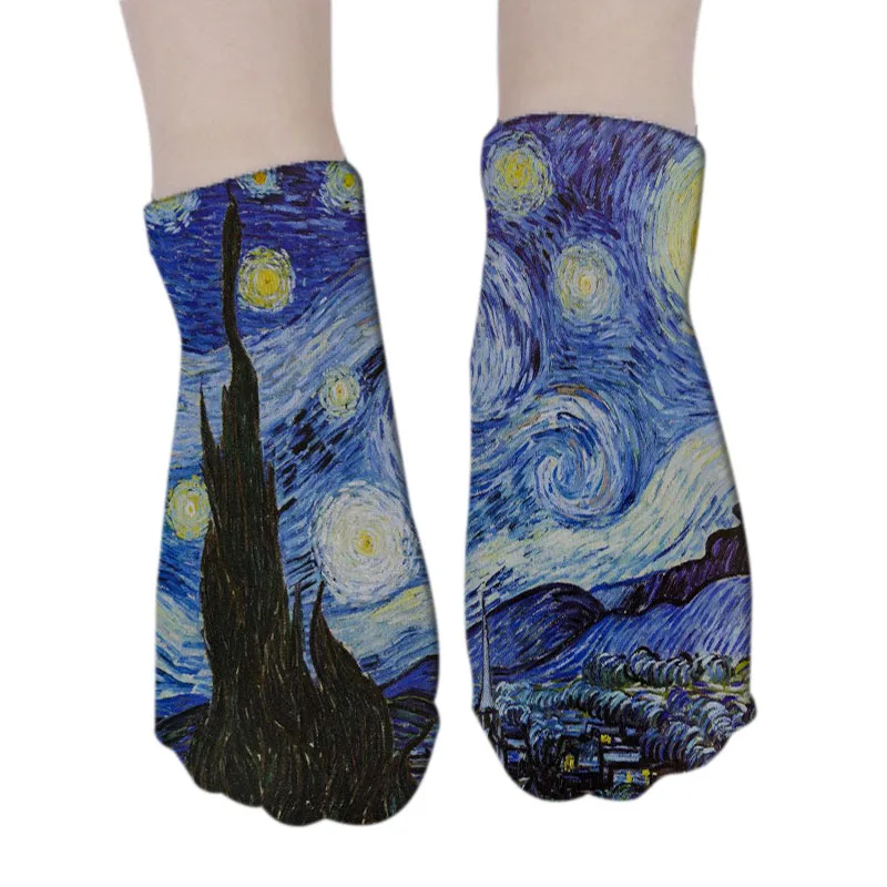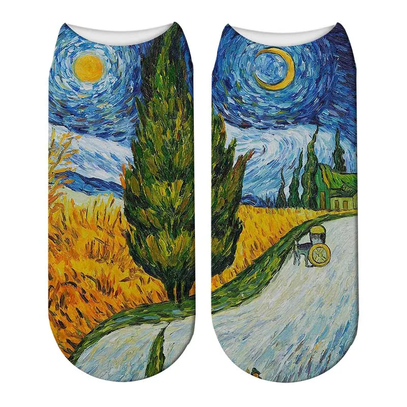 Носки женские с рисунком Ван Гога, Смешные Короткие хлопковые носки унисекс с рисунком масляной живописи, звездная ночь, Подсолнух, повседневные