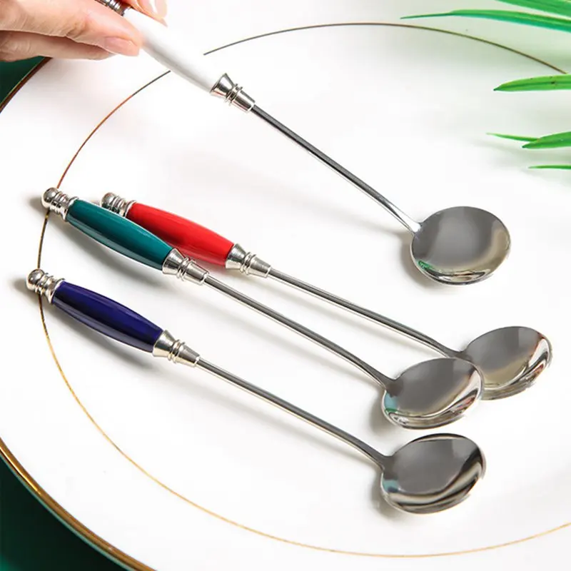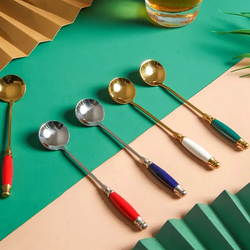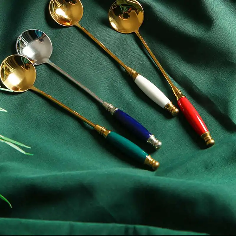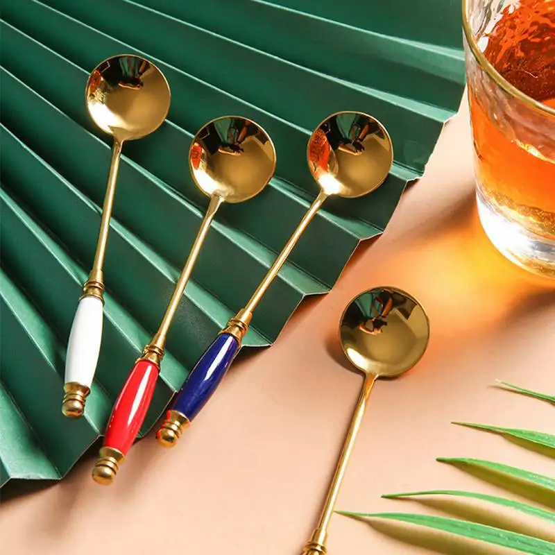 Винтаж Керамика Нержавеющаясталь Кофе ложка золото днем Чай десерт ЛАТТЕ Ложка фруктовые закуски вилка Кухня инструмент Чай ложка