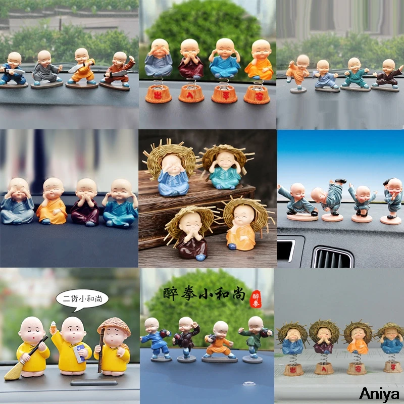Миниатюрный маленький монах из смолы, аксессуары для семейного офиса, украшения для автомобиля, 4 шт.