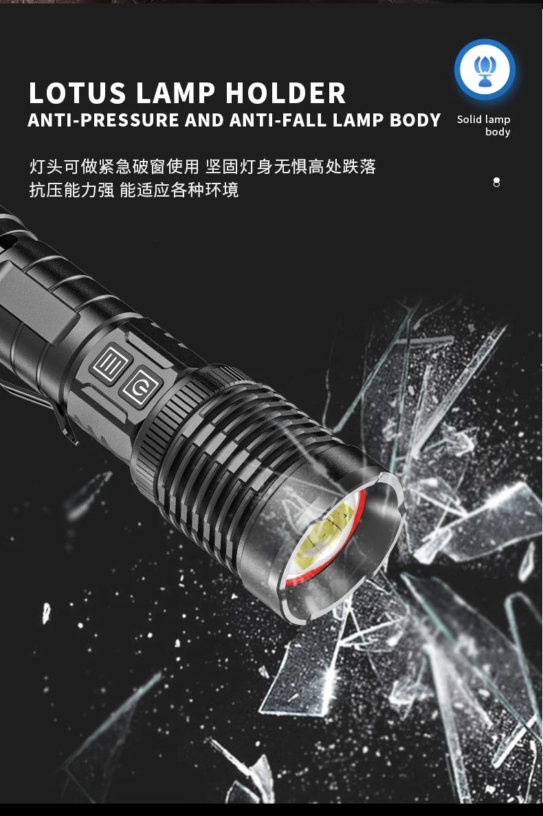 Супер яркий 4 Core XHP110 светодиодный фонарик с заряда в Дисплей Функция Расстояние освещения превышает 500 м подходит для использования вне помещений