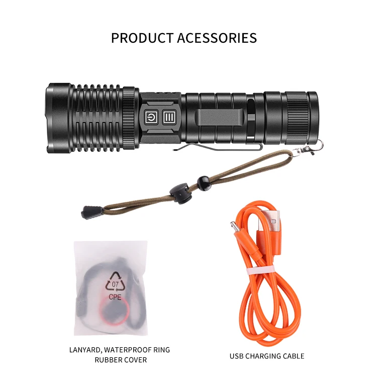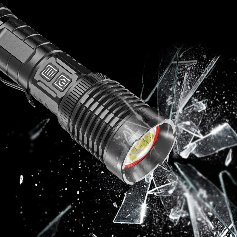 * С использованием 4 основных ламп P110 Максимальный световой поток достигает 6800, максимальное расстояние освещения превышает 500 метров, а яркость превышает яркость автомобильных фар. Это ваш лучший выбор для приключений на открытом воздухе, кемпинга и пеших прогулок.* С умным ЖК-дисплеем, мощностью дисплея, яркостью дисплея. Когда батарея низкая, ее необходимо заряжать вовремя, чтобы избежать повреждения батареи.* Поверхность жесткая анодированная, износостойкая, анти-капля и антикоррозийная. На хвосте есть молоток безопасности, который может легко сломать стекло.