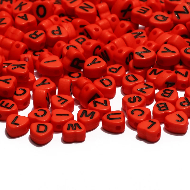 Бусины алфавита в форме сердца для изготовления ювелирных изделий, акриловые смешанные буквы, разделители, сделай сам, для браслетов, ожерелий, трендовый поставщик, 100200500 шт.