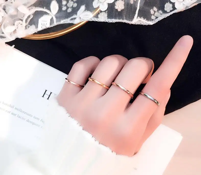 2 мм тонкие кольца из нержавеющей стали черного цвета розовое золот...